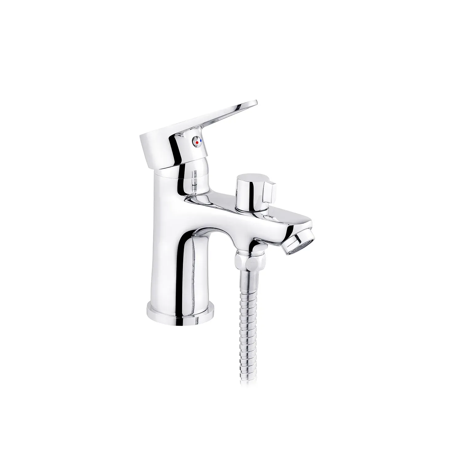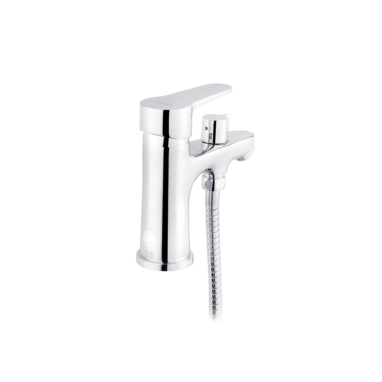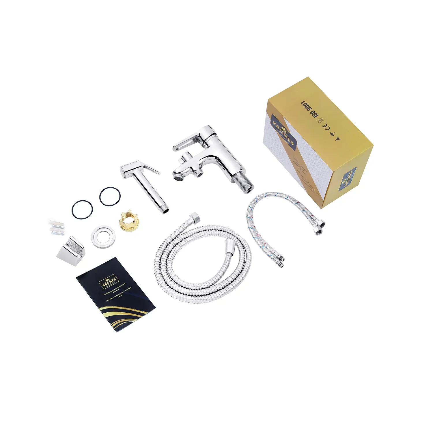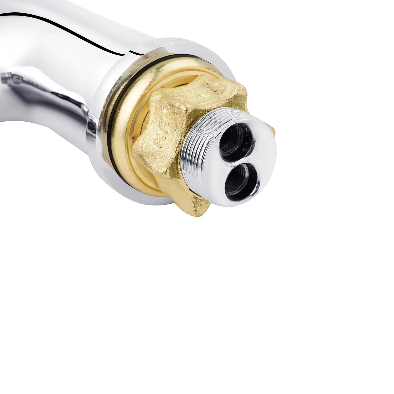 Змішувач для раковини Kroner KRM Elbe - C015 з гігієнічним душем - стильний та практичний вибір для вашої ванної кімнати. Виготовлений з високоякісного силуміну, він гарантує довговічність та надійність. Привабливий хромований колір додає йому елегантності та сучасного вигляду. Картриджний механізм змішування забезпечує плавне регулювання температури води. Врізний спосіб монтажу дозволяє зберігати естетичний вигляд раковини, а глянцева поверхня додає блиску і гарантує легку очистку. Змішувач Kroner - це стильний акцент, що надасть вашому дизайну особливої гармонії і розкоші.