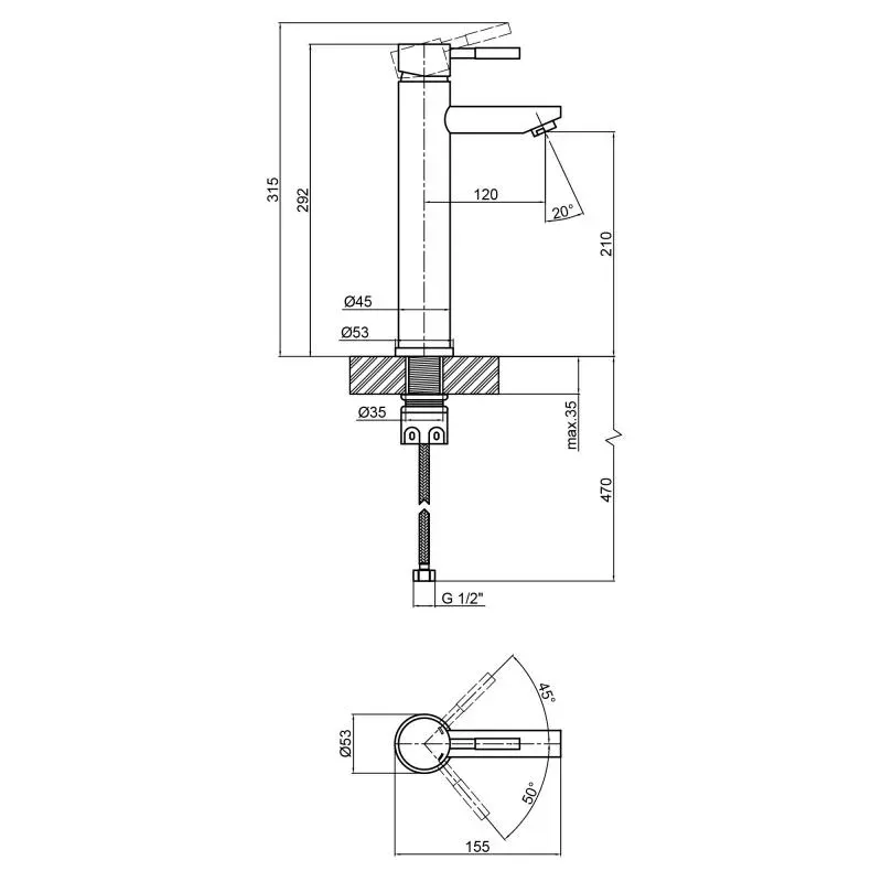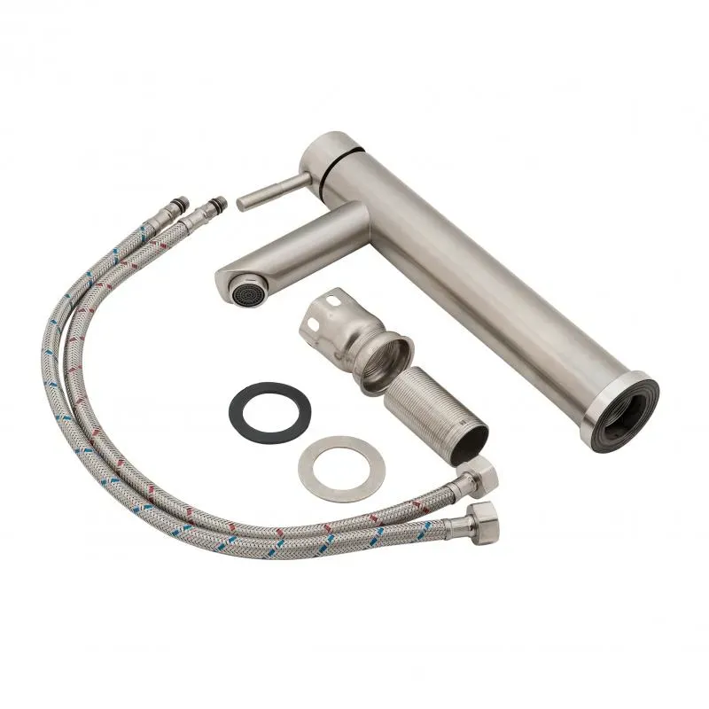 Змішувач для раковини Lidz (NKS) 12 32 001F-1 виготовлений з нержавіючої сталі, яка не схильна до корозії, стійка до ударів і тріщин. Нікельована поверхня надає змішувачу не тільки довговічності, але і оригінального зовнішнього вигляду. Інтенсивність водного потоку та температура регулюються за допомогою переміщення важеля. Підключення води відбувається через гнучкі шланги з діаметром підключення 1/2", які входять до комплекту постачання.