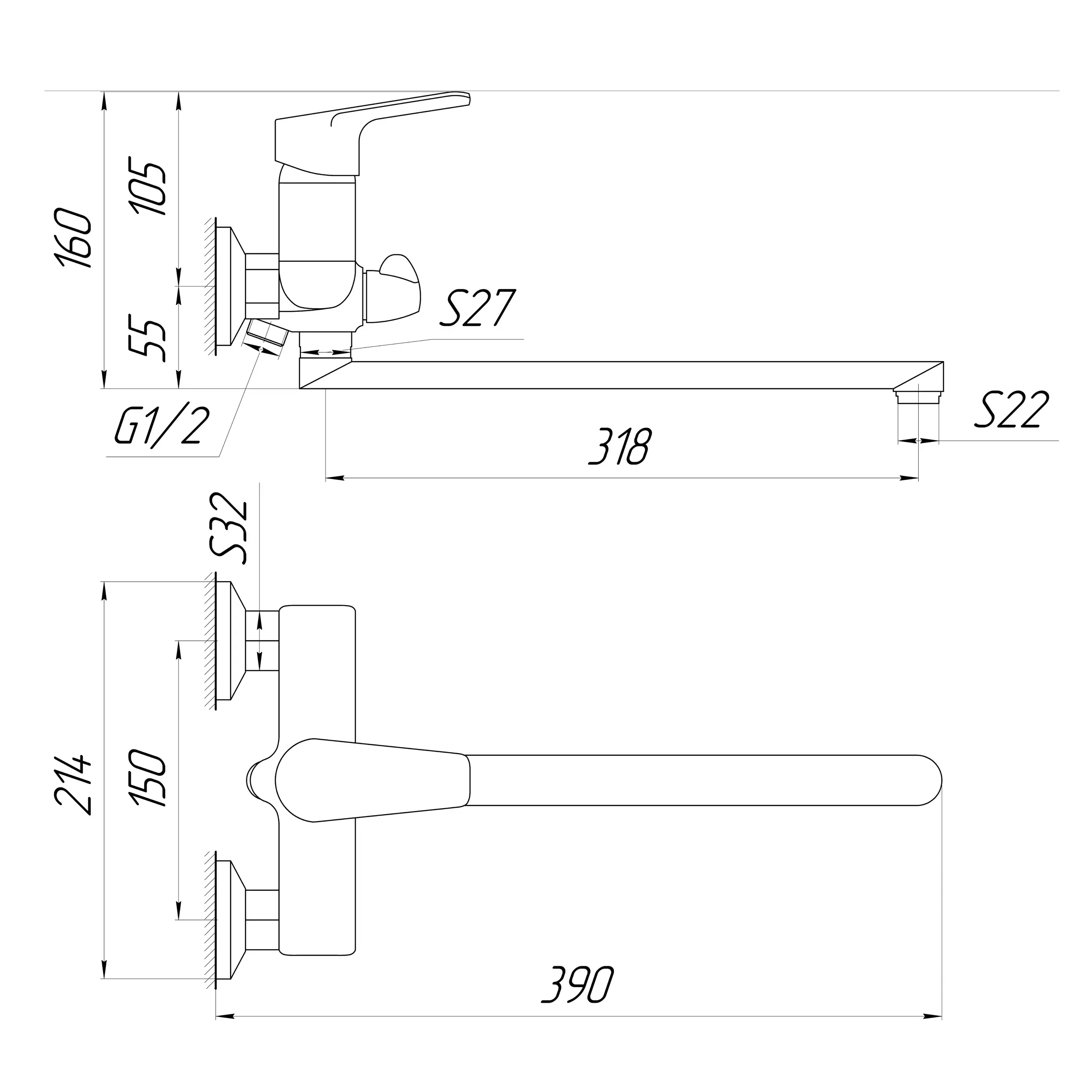 Змішувач для ванни DOMINO BILBAO DBB-208, вилив L-350,EURO NEW