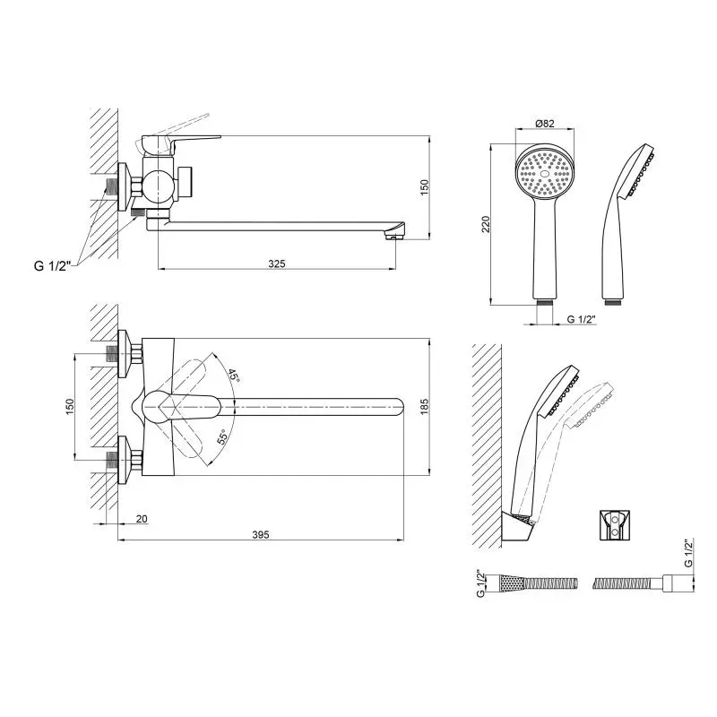 Змішувач для ванни Lidz Nicole 005 LDNIC005BLA45183 з довгим поворотним виливом виготовлений із силуміну, укомплектований кронштейном для ручного душу, душовим шлангом та лійкою. Завдяки якісному покриттю має міцну поверхню та привабливий зовнішній вигляд. Декоративні розетки приховують похибки установки на оздобленні кімнати. Напір води та її температура регулюються поворотом важеля в потрібне положення. Перемикання ванни/души здійснюється за допомогою дивертора.