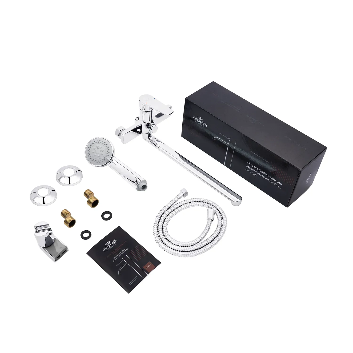 Призначений спеціально для ванни, змішувач Kroner KRP Eifel - C070 легко монтується на стіні, забезпечуючи чистий і організований вигляд простору. Виготовлений з високоякісної латуні, забезпечує міцність і довговічність використання. Механізм змішування на основі картриджа дозволяє плавно регулювати температуру води. Глянцева поверхня та елегантна кругла форма лійки додають шарму і привабливості. Змішувач Kroner забезпечить комфорт і задоволення під час кожного користування.