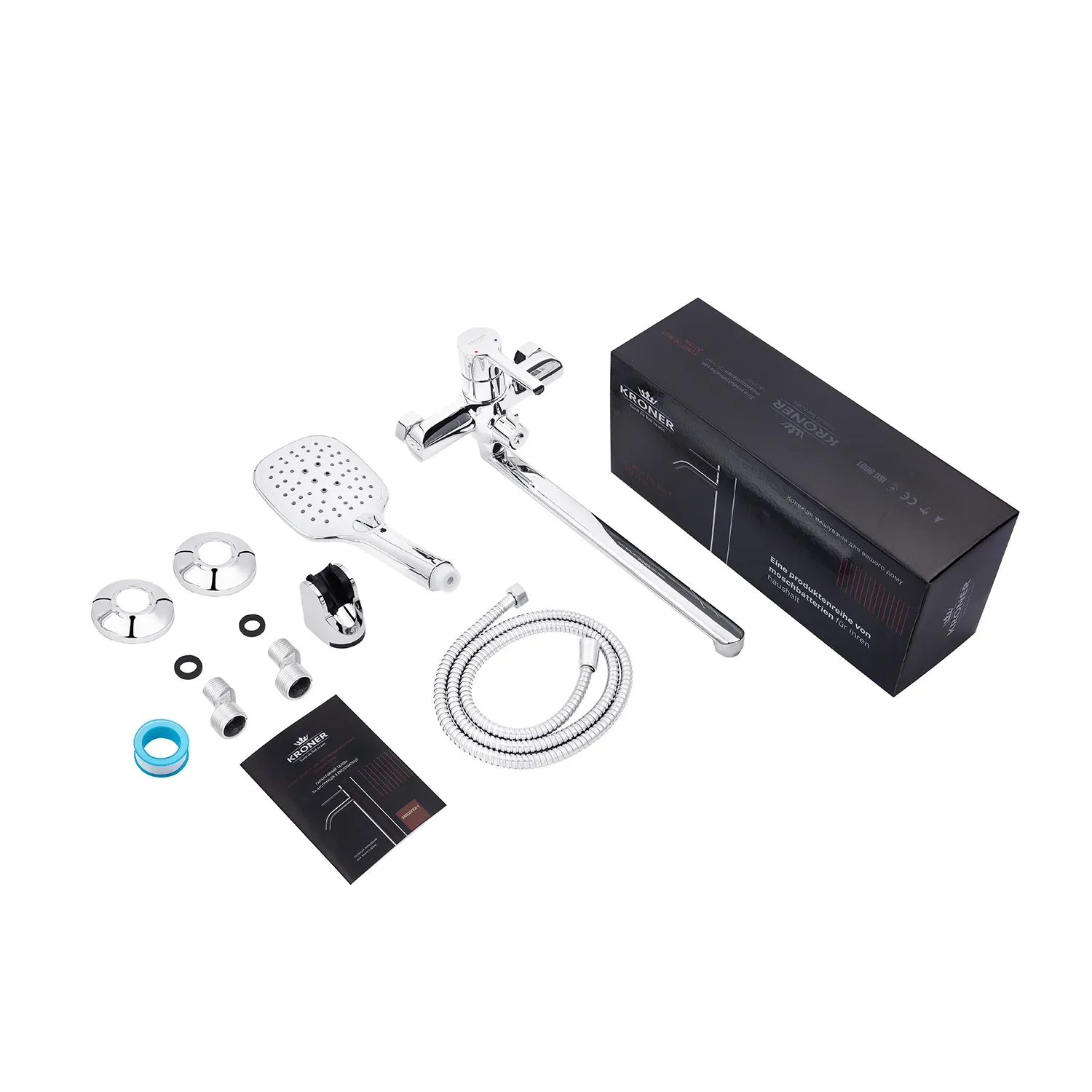 Призначений спеціально для ванни, змішувач Kroner KRP Essen - C070 легко монтується на стіні, забезпечуючи чистий і організований вигляд простору. Виготовлений з високоякісної латуні, забезпечує міцність і довговічність використання. Механізм змішування на основі картриджа дозволяє плавно регулювати температуру води. Глянцева поверхня та елегантна прямокутна форма лійки додають шарму і привабливості. Змішувач Kroner забезпечить комфорт і задоволення під час кожного користування.