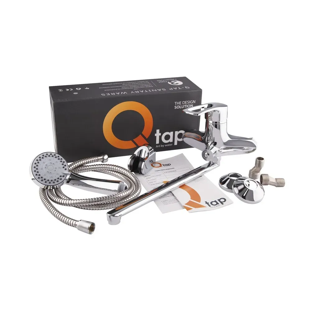 Змішувач QTAP Hansberg CRM виготовлений із високоякісної латуні та має покриття хром. Змішувач має поворотний вилив 32 см завдовжки, нижній відвід для під'єднання душового шланга 150 см та обладнується переднім перемикачем між режимами ванна/душ.
