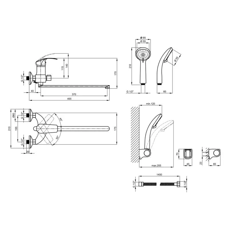 Змішувач QTAP Form CRM 005 виготовлений із високоякісної латуні та має покриття хром. Змішувач має поворотний вилив 32 см завдовжки, нижній відвід для під'єднання душового шланга 150 см та обладнується переднім перемикачем PUSH UP між режимами ванна/душ.