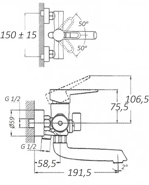 Змішувач для ванни Kroner KRM Elbe - C060 (к.35) кор. ніс