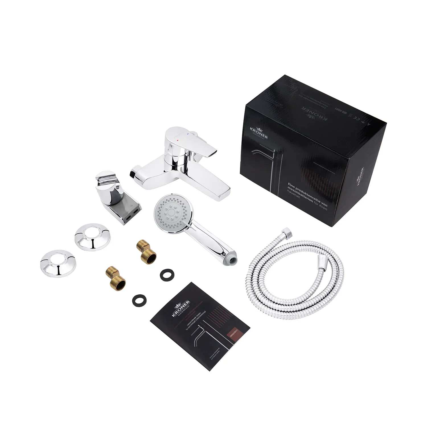 Призначений спеціально для ванни, змішувач Kroner KRP Enzo - C060 легко монтується на стіні, забезпечуючи чистий і організований вигляд простору. Виготовлений з високоякісної латуні, забезпечує міцність і довговічність використання. Механізм змішування на основі картриджа дозволяє плавно регулювати температуру води. Глянцева поверхня та елегантна кругла форма лійки додають шарму і привабливості. Змішувач Kroner забезпечить комфорт і задоволення під час кожного користування.