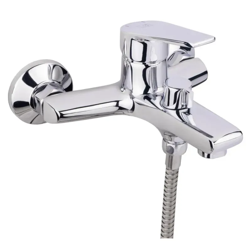 Змішувач для ванни Lidz (CRM) 19 46 006-1 New виконано в хромованому кольорі з глянцевою поверхнею з коротким фіксованим виливом. Разом з тримачем для душу він монтується на стіну над ванною або в душі. Декоративні розетки приховають всі похибки встановлення. Напір води і її температура регулюються поворотом важеля в необхідне положення. Перемикання ванна/душ виконується за допомогою дивертора.