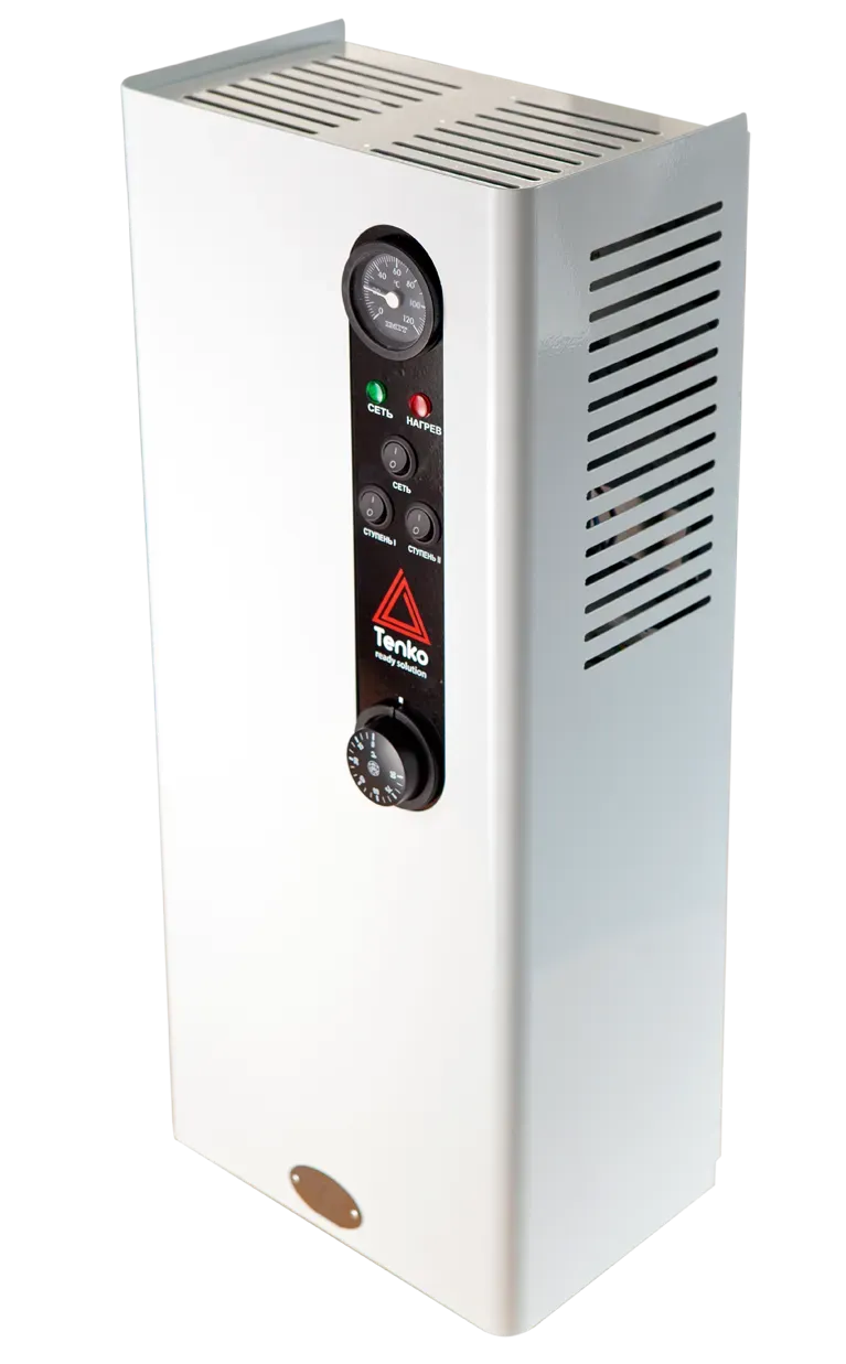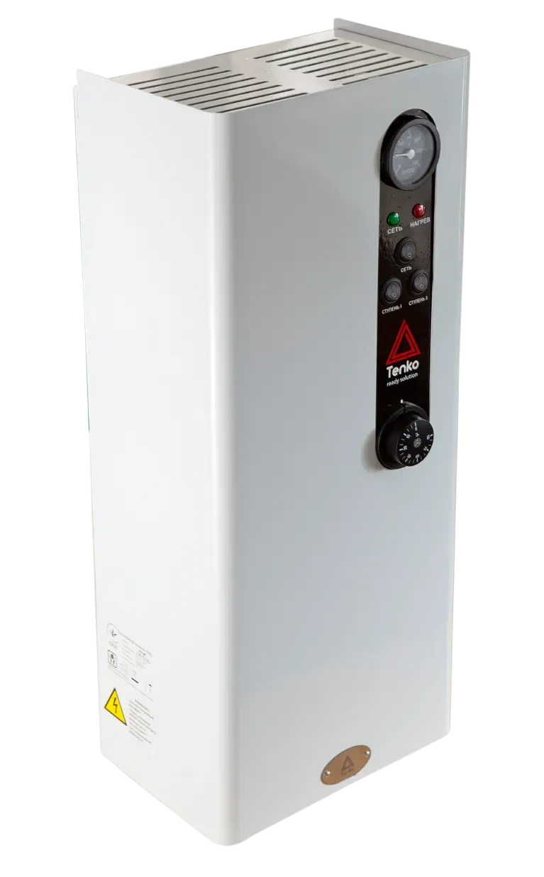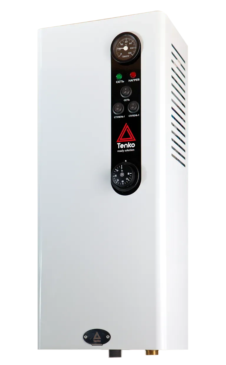 Электрокотлы серии «Стандарт» - это оборудование, которое используется для отопления помещений площадью до 150 кв.м. или в качестве вспомогательного устройства в существующей системе отопления. Модели данной серии отличаются высокой надежностью и выпускаются мощностью от 3 до 15 кВт. Котлы имеют три ступени нагрева, а подключение возможно в электрическую сеть 220 В или 380 В. Котлы «Стандарт» оснащены двухступенчатой системой защиты, которая предохраняет устройство от перегрева, датчиком протока, отключающим питание при отсутствии циркуляции теплоносителя, а также предохранительным клапаном, сбрасывающим давление в системе выше максимально допустимого в 3 атм. Электрические котлы данной линейки комплектуются надежным трехскоростным циркуляционным насосом, автоматическим воздухоотводчиком, аналоговым термометром, световыми индикаторами режимов работы и капиллярным термостатом, который позволяет плавно регулировать температуру в диапазоне 0 – 90°С. За счет грамотных инженерных решений, основанных на многолетнем опыте, электрические котлы серии «Стандарт» являются максимально доступными по стоимости в сравнении с аналогами зарубежных и отечественных производителей. Представленная линейка электрокотлов ТМ Tenko позволяет максимально упростить монтаж и эксплуатацию систем отопления, чем пользуется заслуженной популярностью у широкого круга потребителей.