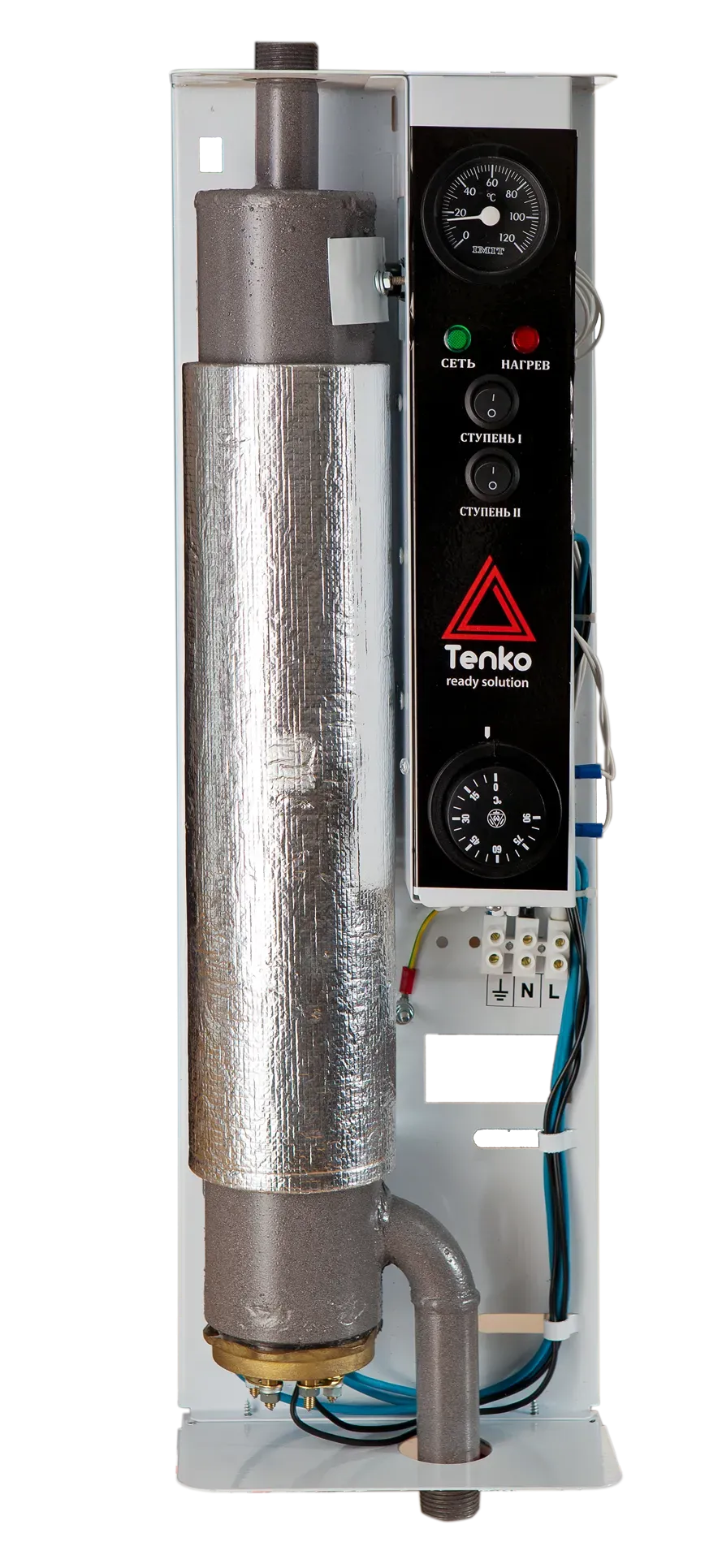 Линейка электрических котлов «Эконом» производства компании Tenko предназначена для отопления в автономной режиме помещений площадью до 300 кв.м. или как дополнительное устройство в действующей системе отопления. Серия котлов «Эконом» оснащена двухступенчатой системой защиты, которая предохраняет устройство от перегрева, итальянским капиллярным термостатом IMIT, плавно регулирующим температуру теплоносителя системы в диапазоне 0 – 90°С, аналоговым термометром, световыми индикаторами для визуального контроля работы, а также выводом для подключения циркуляционного насоса. Модельный ряд состоит из котлов мощностью от 3 до 30 кВт, имеющими три ( от 3 до 15 кВт) и две (от 18 до 30 кВт) ступени нагрева. Подключение оборудования осуществляется в однофазные или трехфазные сети напряжением 220 В или 380 В соответственно. К преимуществам электрических котлов торговой марки Tenko относятся: высокий коэффициент полезного действия (КПД), простота технического обслуживания, экологическая чистота, надежность, удобство монтажа, эксплуатации и транспортировки. В сочетании с невысокой ценой и низкими эксплуатационными расходами электрокотлы серии «Эконом» стали идеальным вариантом по соотношению качества, функциональных возможностей и стоимости.