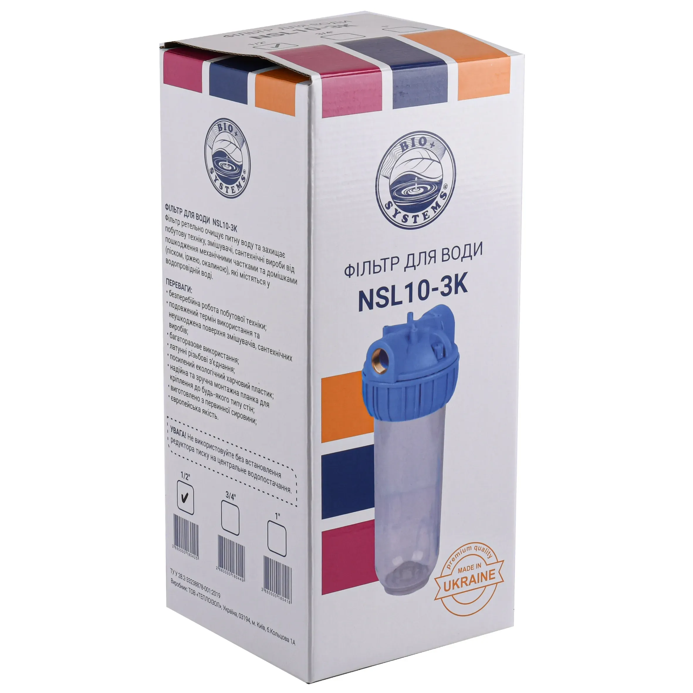 Фильтр-колба 3-х комп.+ ключ, планка, БЕЗ картриджа Bio+ systems NSL10-3K, 3/4″