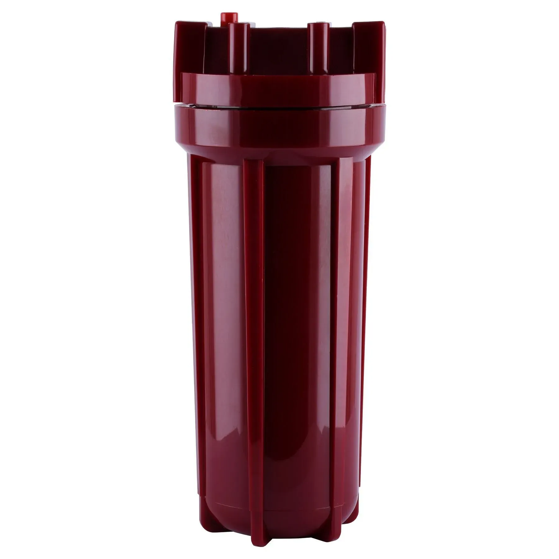 Фильтр магистральный применяется для защиты отопительных систем, домашних систем теплоснабжения, баков с горячей водой, а также промышленных систем водоснабжения. Представляет собой двухэлементный корпус (стакан и крышка) красного цвета с латунной резьбой. Укомплектован воздушным клапаном, который позволяет выпустить лишний воздух во время замены фильтра.