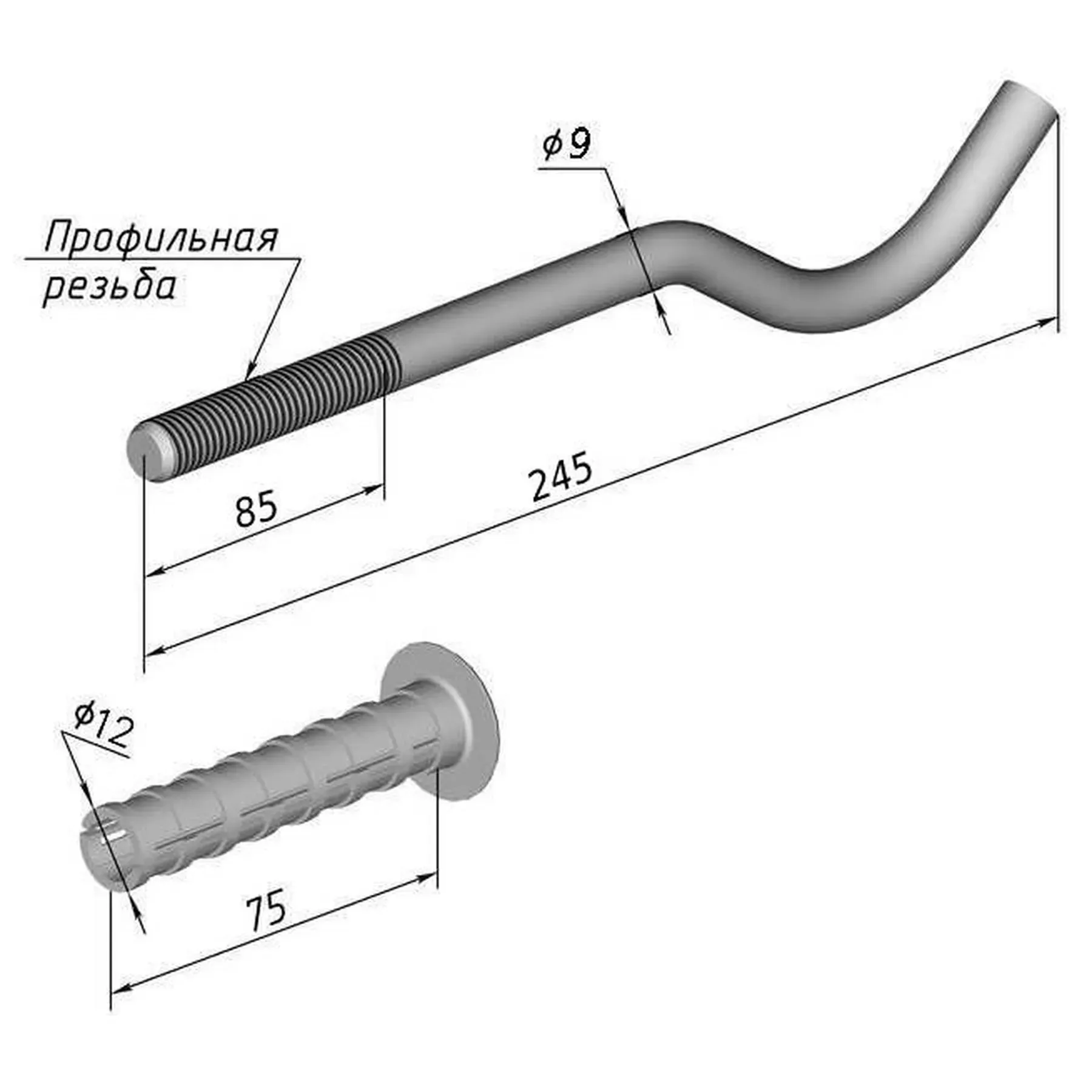 Комплект кронштейнов радиатора CRISTAL NS-1016 штырьковый прорезиненный с дюбелем Ø9х245мм (2ш.)