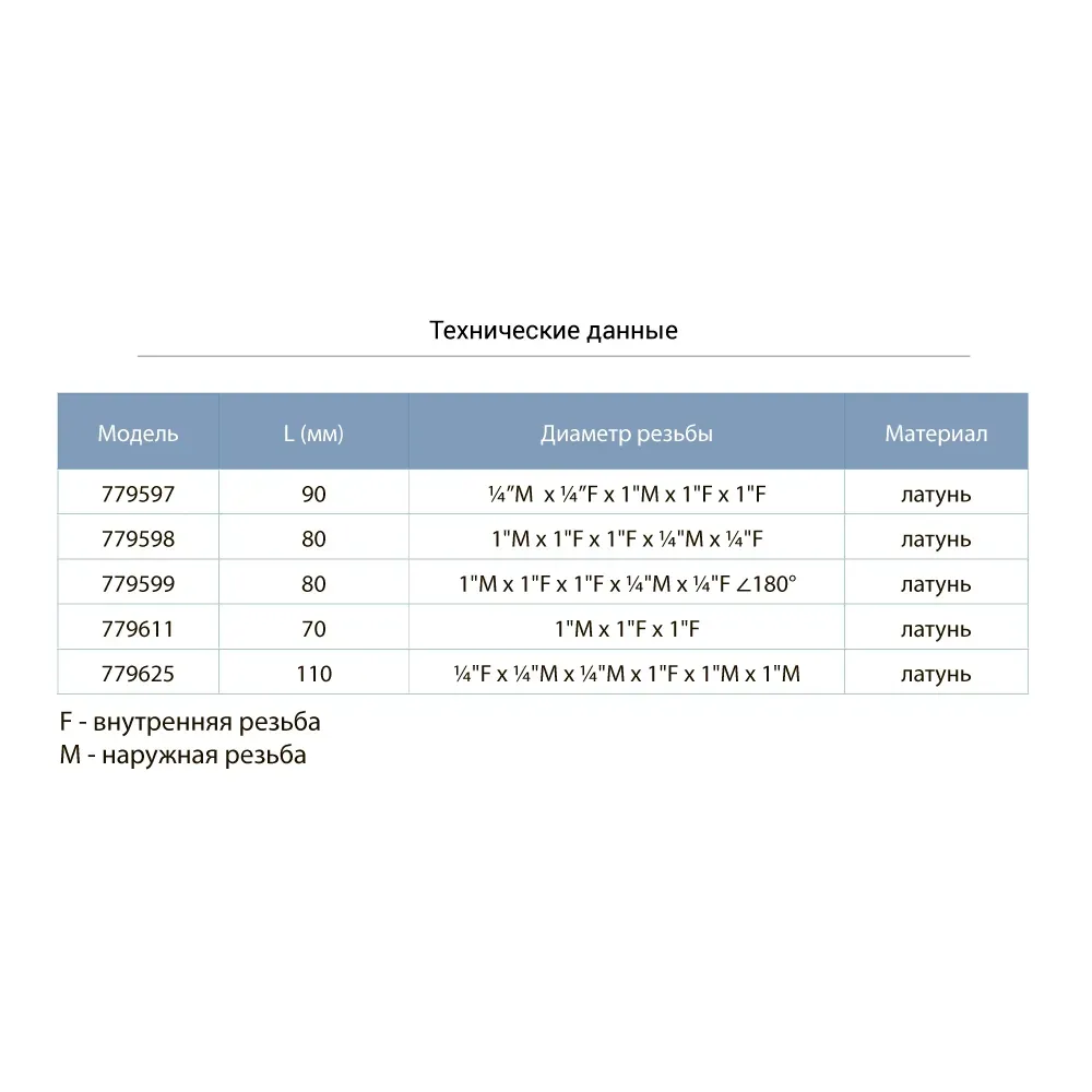 Соединитель пятивыводной 80мм 1”М×1”F×1”F×1/4”M×1/4”F ∠180° ∠180° AQUATICA (779599)