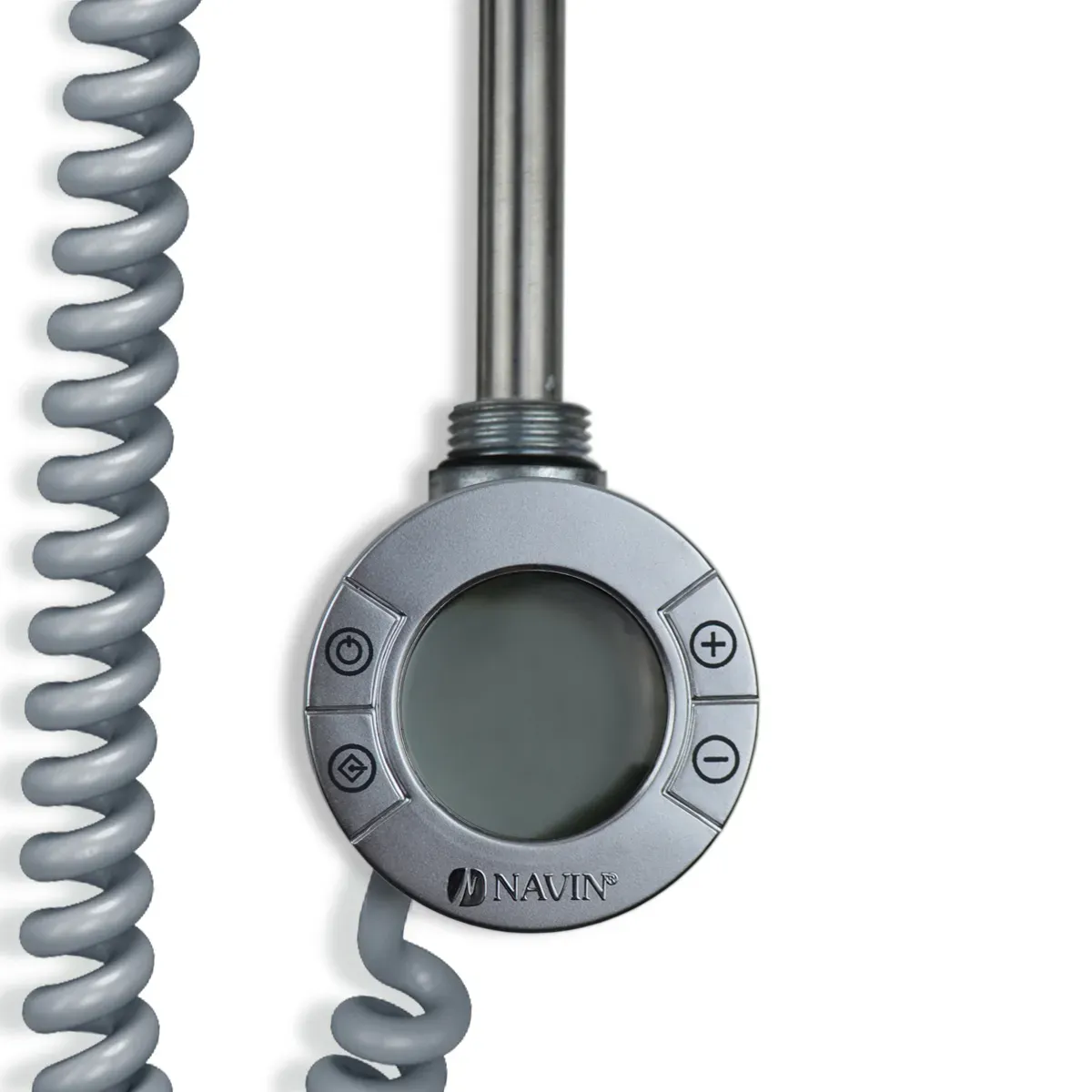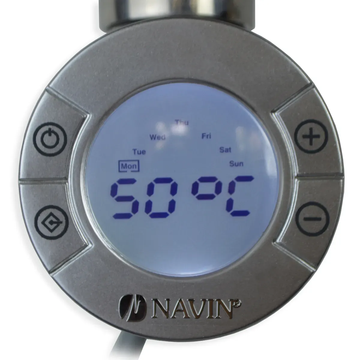 Navin Sigma - электрический нагревательный элемент с программированием от украинского производителя NAVIN, это инновационный функциональный электронагреватель с сенсорным блоком управления, позволяющий удобно настраивать работу полотенцесушителя в течение дня, а также запрограммировать ее работу на неделю с нужным временным диапазоном.