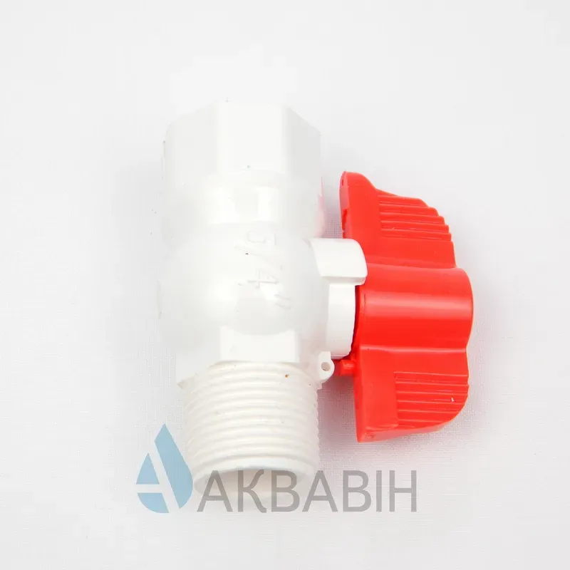 Кран шаровый пластиковый, используется как запорный механизм в системах полива и подачи жидкостей.