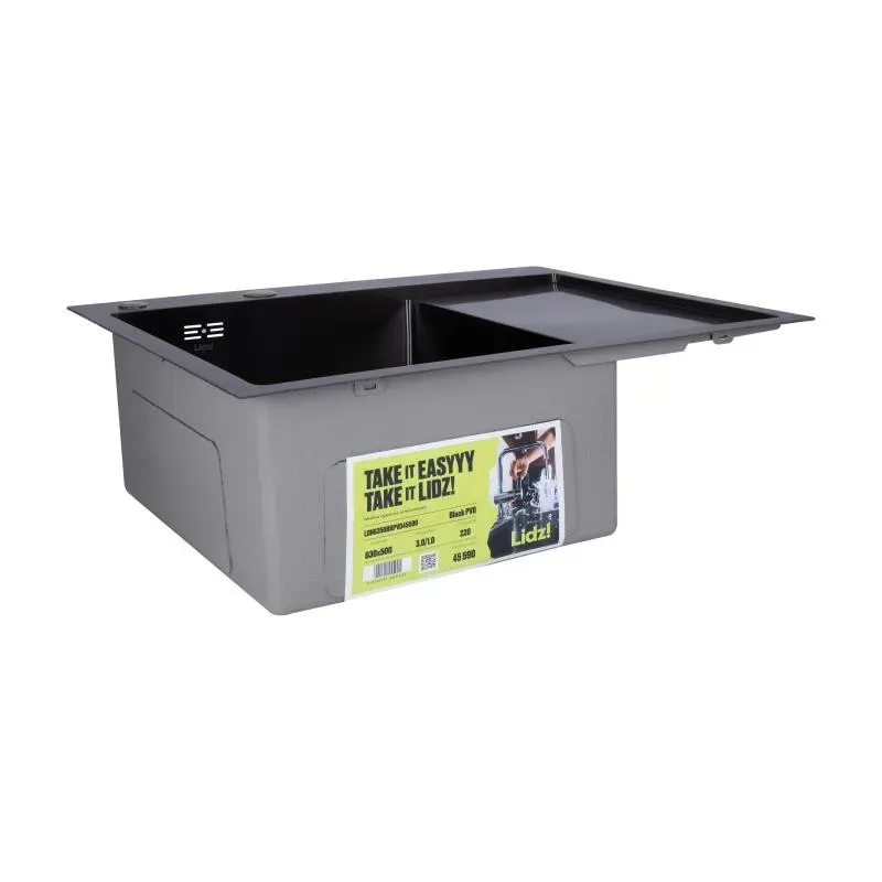 Lidz Handmade H6350BR Мойка для кухни интегрированная крыло справа Brushed Black PVD 3,0/1,0 мм сочетает в себе высокое качество изготовления и эстетическую привлекательность благодаря отделке Brushed Black PVD. Толщина нержавеющей стали 3,0/1,0 мм гарантирует долговечность и устойчивость к воздействию влаги, делая эту мойку идеальным выбором для современной кухни.