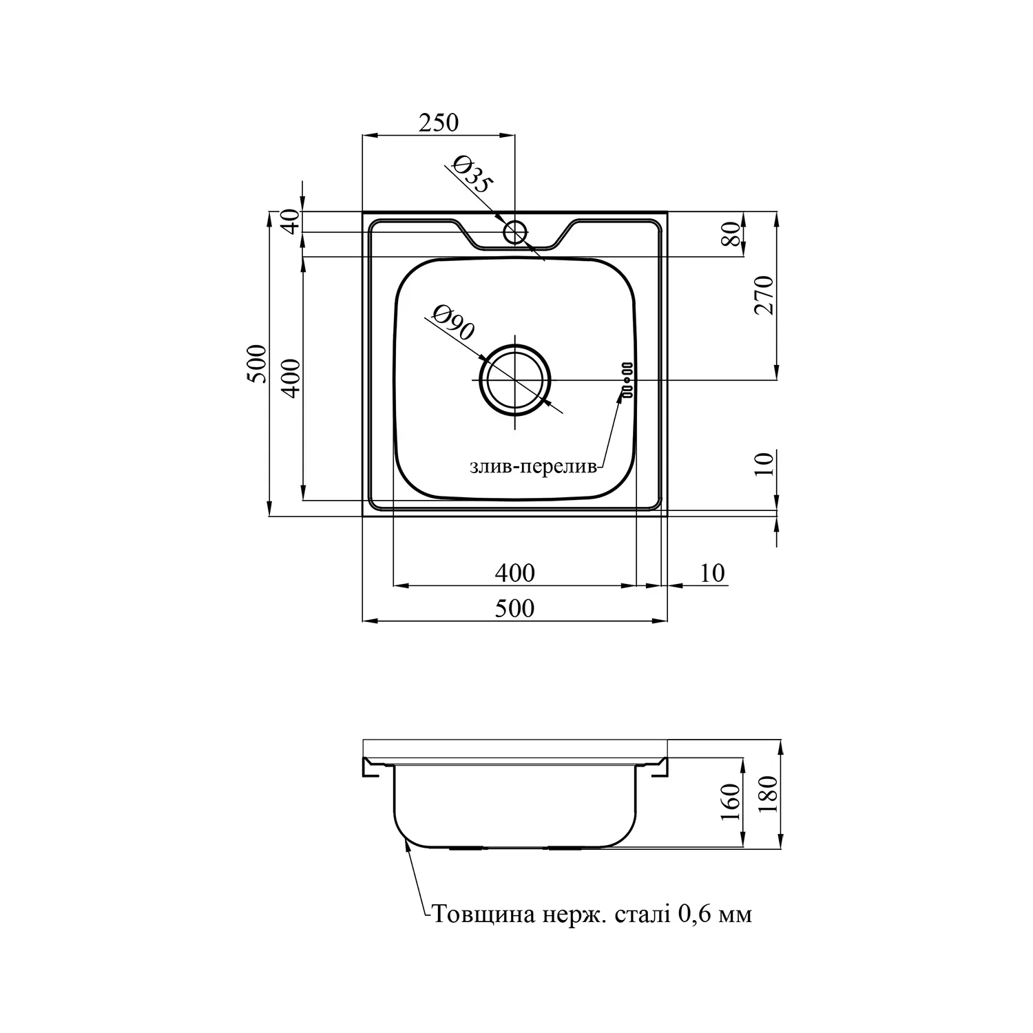 Кухонна мийка накладна Kroner KRP Satin - 5050 (0,6 мм) - ідеальне рішення для сучасної кухні. Завдяки своїй квадратній формі та стильному дизайну вона впишеться в будь-який інтер'єр. Накладний спосіб монтажу дозволяє безпроблемно встановити мийку. Виготовлена з високоякісної нержавіючої сталі. Функціональна, надійна та естетично приваблива - мийка від Kroner стане незамінним помічником у приготуваннях та прикрасою вашої кухні.