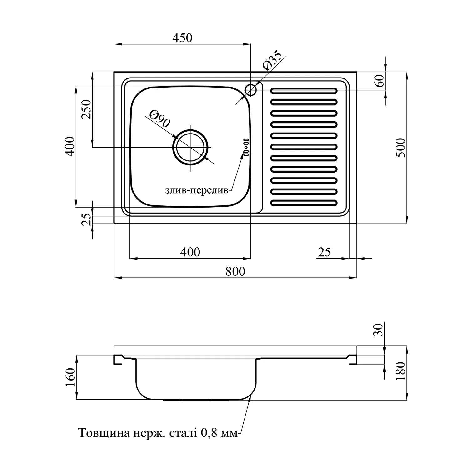 Накладная кухонная мойка kroner krp satin - 5080l (0.8 мм)