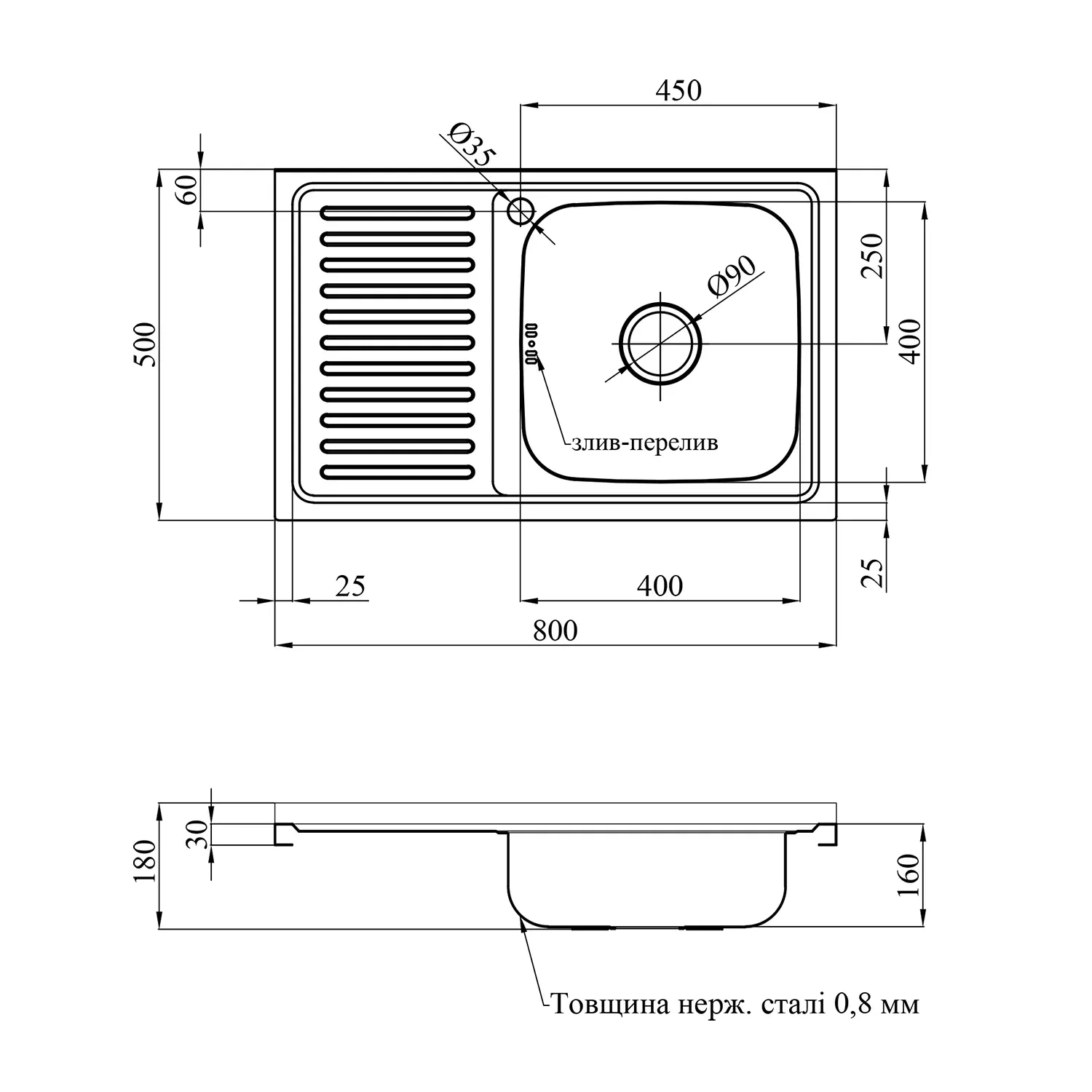 Кухонная мойка накладная kroner krp satin-5080r (0.8 мм)