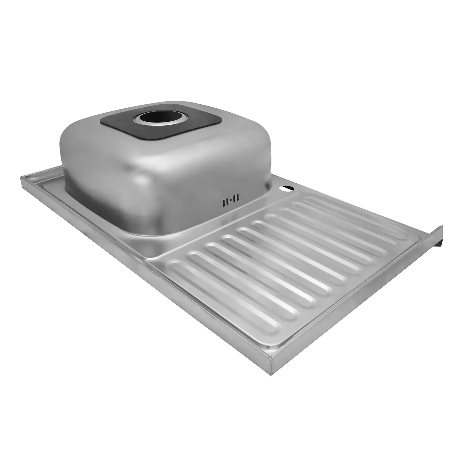 Кухонна мийка накладна Kroner KRP Satin - 5080R (0,8 мм) - ідеальне рішення для сучасної кухні. Завдяки своїй прямокутній формі та крилу для посуду вона впишеться в будь-який інтер'єр. Накладний спосіб монтажу дозволяє безпроблемно встановити мийку. Виготовлена з високоякісної нержавіючої сталі. Функціональна, надійна та естетично приваблива - мийка від Kroner стане незамінним помічником у приготуваннях та прикрасою вашої кухні.