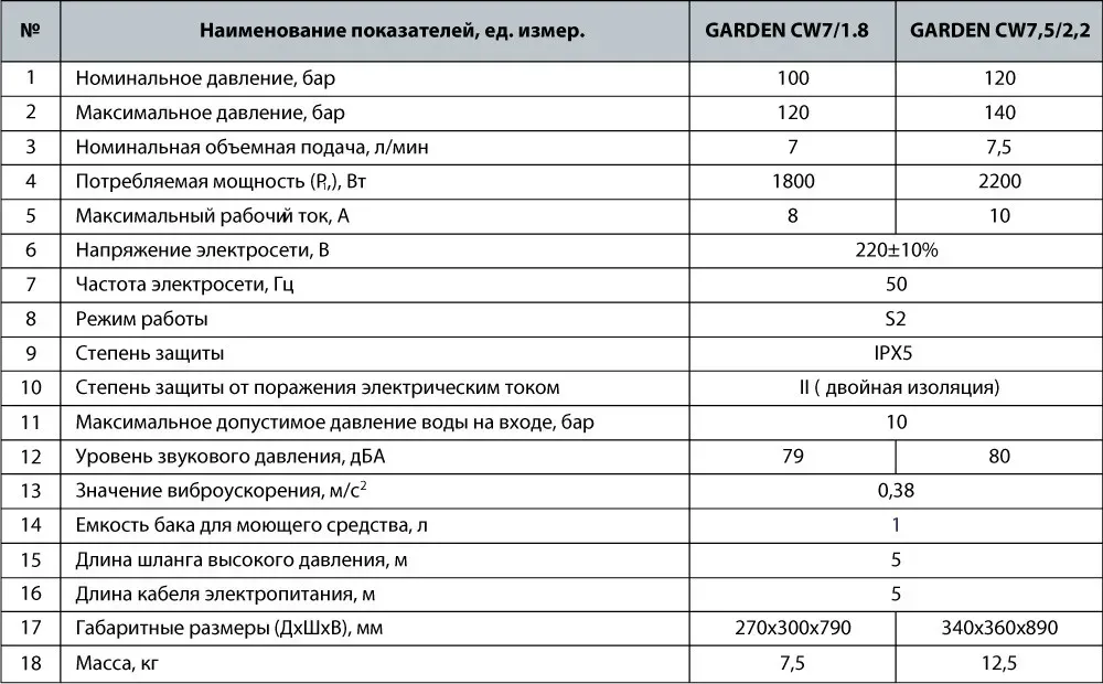 Аппараты моющие высокого давления являются высоконапорными аппаратами, предназначенными для мойки автомобилей, строений, инструментов, фасадов, террас садовых принадлежностей и т.д.с помощью струи воды под высоким давлением (при необходимости с добавлением моющих средств). Аппараты могут быть подключены к водопроводной магистрали или всасывать воду из емкости.Мойка "Насосы+" GARDEN CW 7/1.8