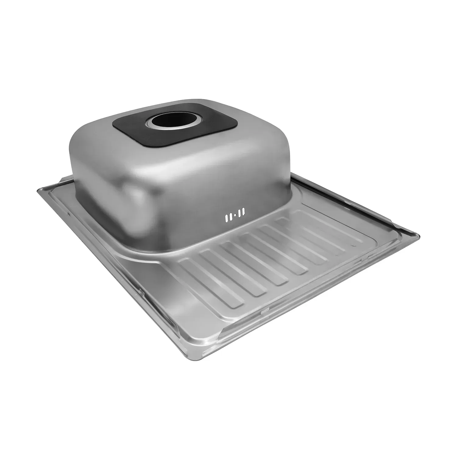 Кухонна мийка Kroner KRP Satin - 6950 (0,8 мм) - ідеальне рішення для сучасної кухні. Мийка виконана у вигляді прямокутної чаші з крилом для посуду, монтується врізним способом. Виготовлена з високоякісної нержавіючої сталі, що забезпечує довгий термін служби і легку очистку. Функціональна, надійна та естетично приваблива - мийка від Kroner стане незамінним помічником у приготуваннях та прикрасою вашої кухні.