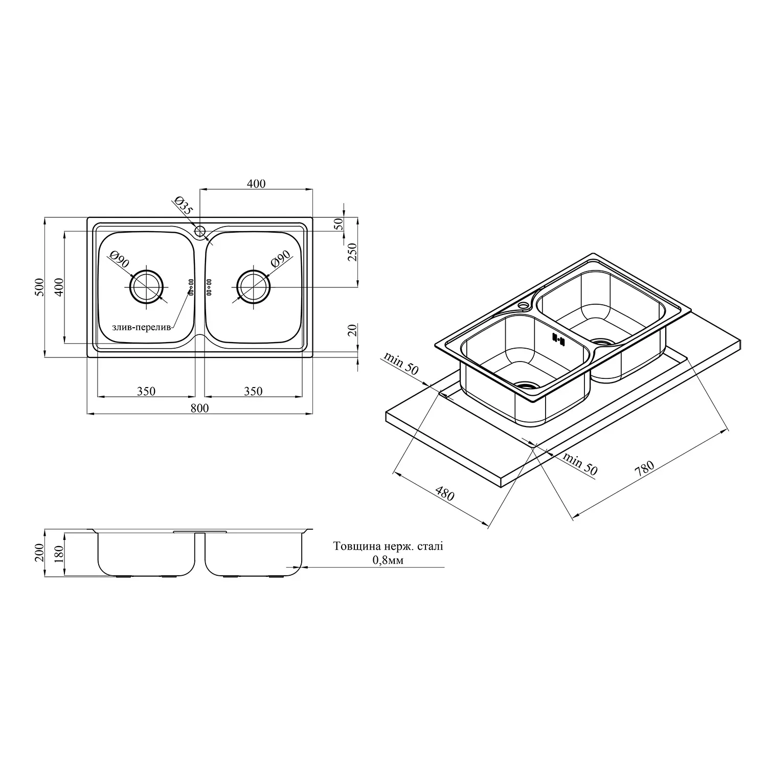 Кухонная мойка kroner krp satin-7948z (0.8 мм)