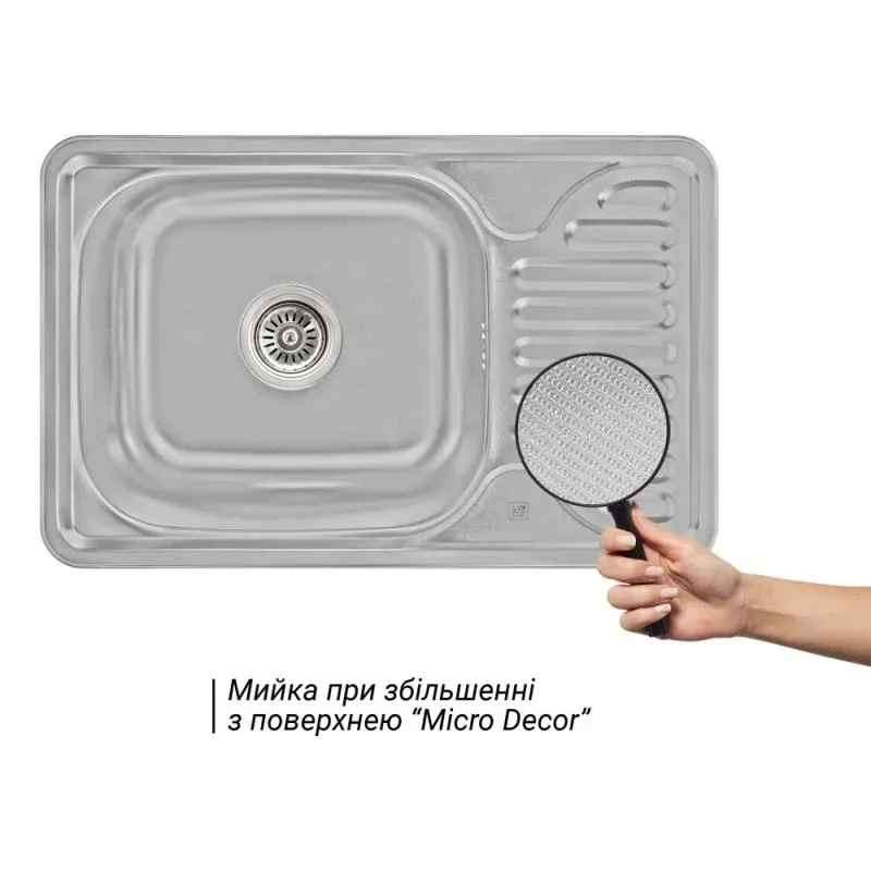 Кухонная мойка Lidz 6642 0,8 мм Micro Decor изготовлена из высококачественной нержавеющей стали пищевой марки, поэтому изделие прослужит долгие годы. Так же стоит отметить исключительный дизайн который украсит любую кухню. Отменное качество и дизайн мойки позволят удовлетворить самые высокие требования и создать уют в вашем доме! Мойка выполнена с рабочей прямоугольной чашей, ребристым крылом для сушки посуды и разморозки продуктов. Монтируется врезным способом в отверстие в столешнице.