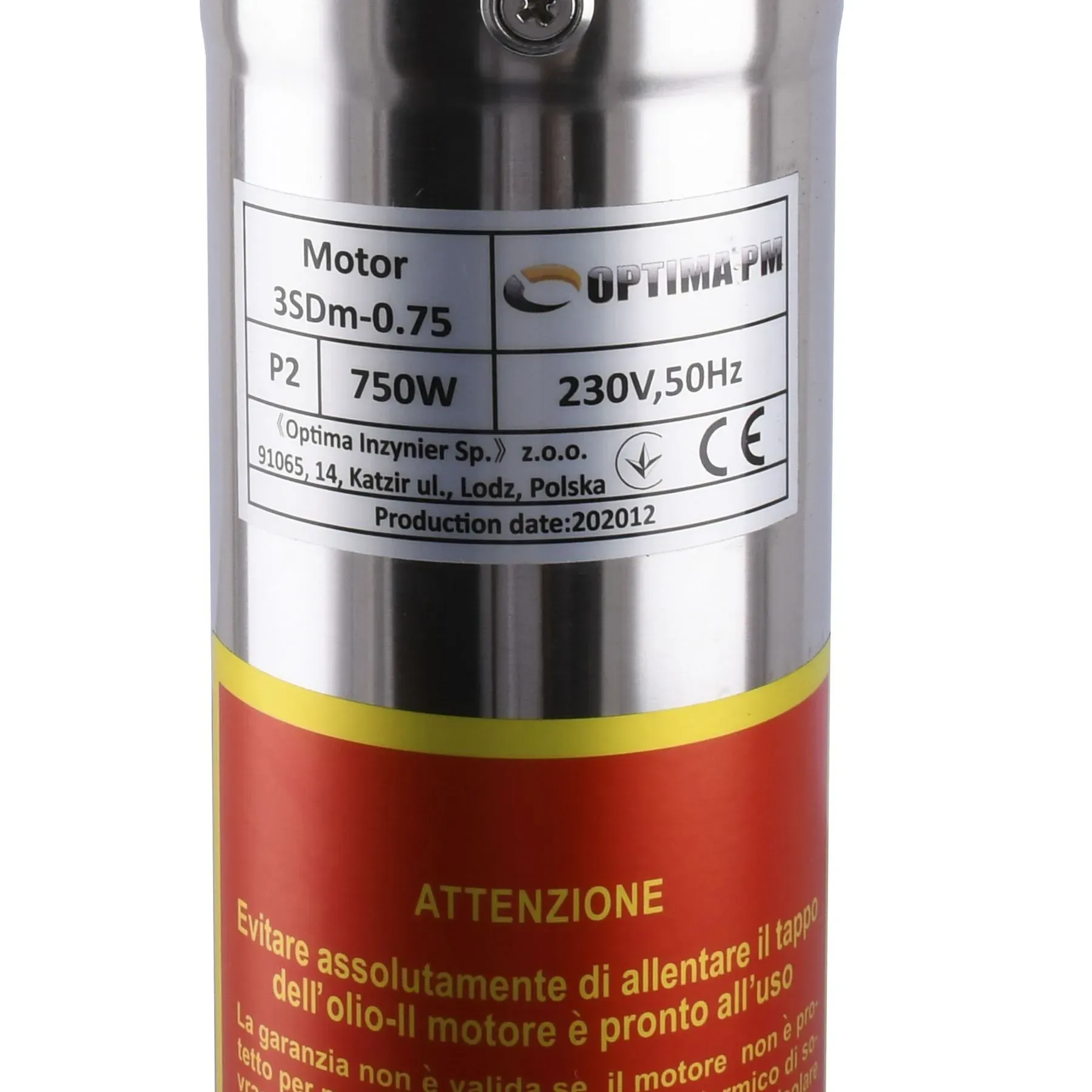 OPTIMA PM 3SDm2.5/20 0.75 кВт 90м оснащен асинхронным однофазными двигателем с коротко замкнутым ротором и «плавающим» рабочим колесом, для реализации повышенной устойчивости к песку. Двигатель заполнен специальным минеральным маслом для эффективного охлаждения (теплоотдачи в окружающую среду), а также для смазки и охлаждения подшипников и механического уплотнения.