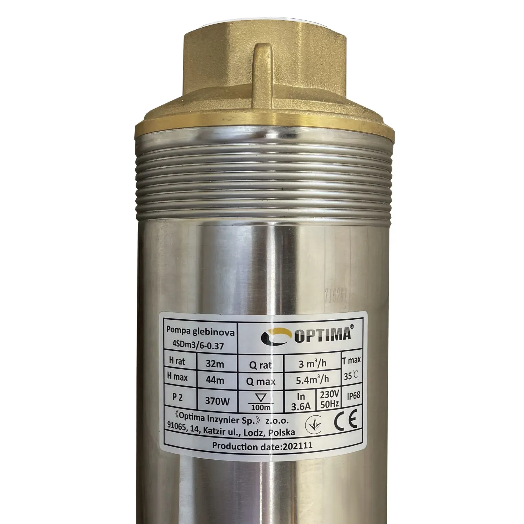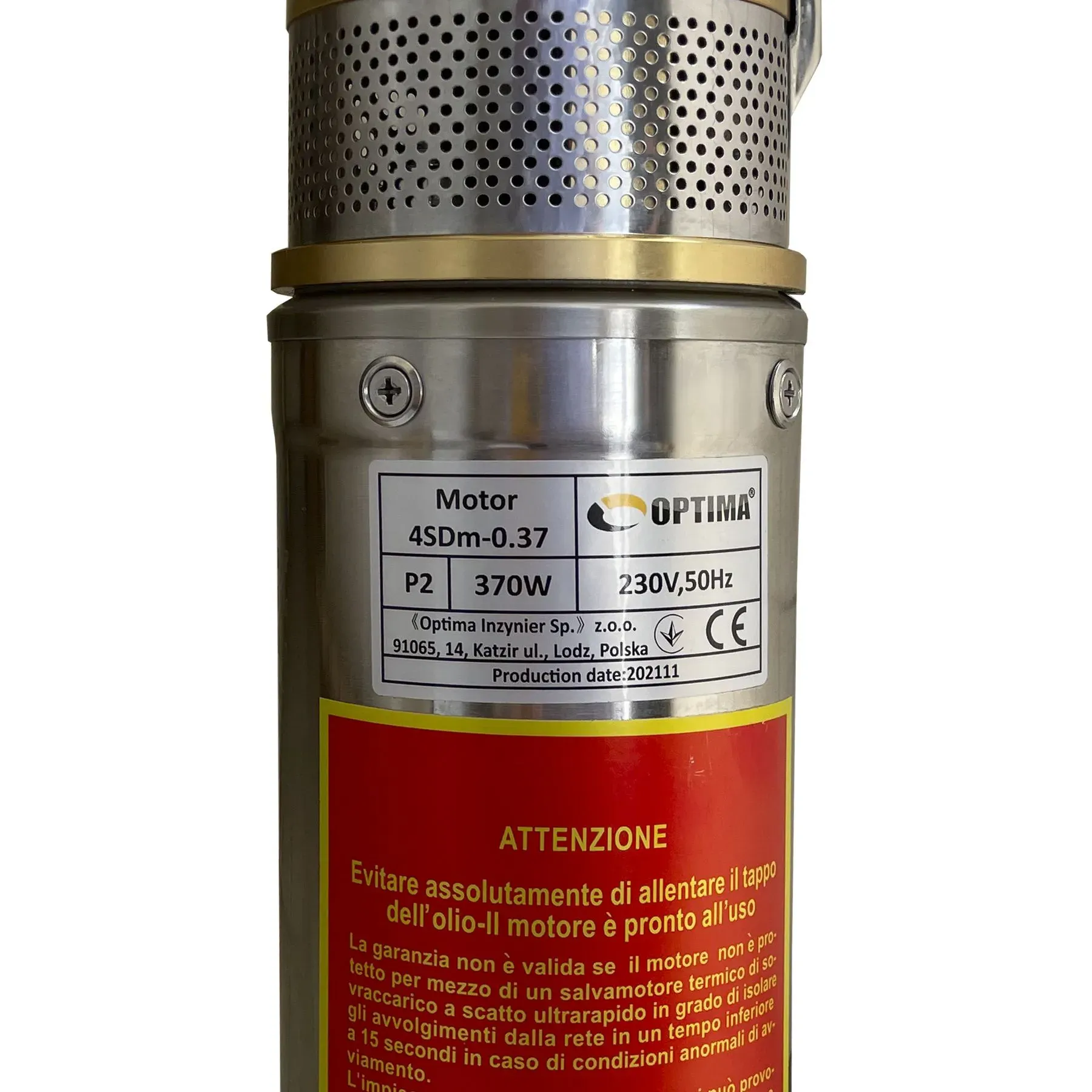 Насос скважинный с повышенной устойчивостью к песку OPTIMA 4SDm3/ 6 0.37 кВт 44м диаметром 4″ предназначенный для подачи воды из скважин (диаметром от 4 ″или 100 мм) и открытых водоемов с глубиной больше чем 9 м, когда использование поверхностного насоса невозможно или нецелесообразно.