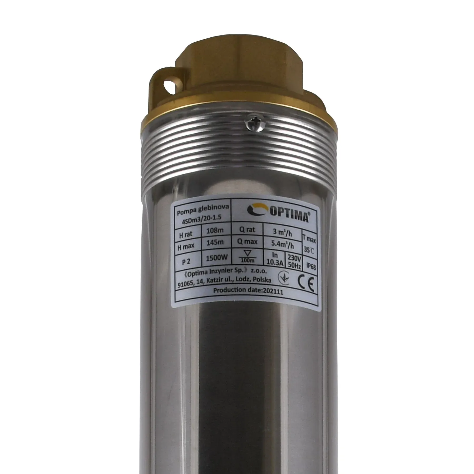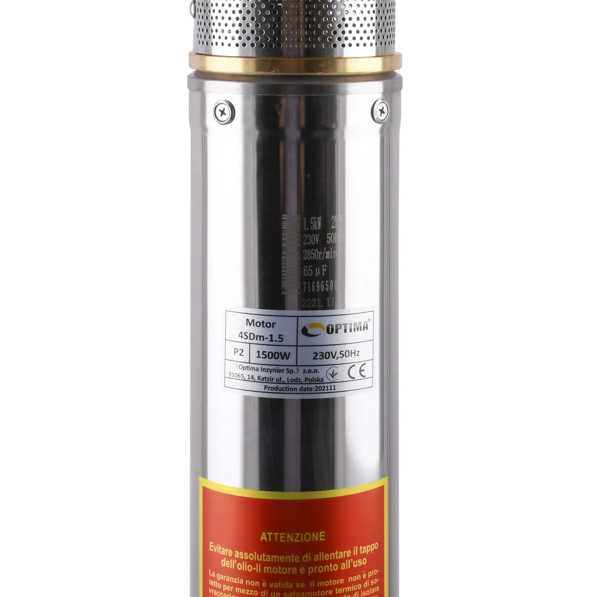 Насос скважинный с повышенной устойчивостью к песку OPTIMA 4SDm3/20 1.5 кВт 145м диаметром 4″ предназначенный для подачи воды из скважин (диаметром от 4 ″или 101 мм) и открытых водоемов с глубиной больше чем 9 м, когда использование поверхностного насоса невозможно или нецелесообразно.