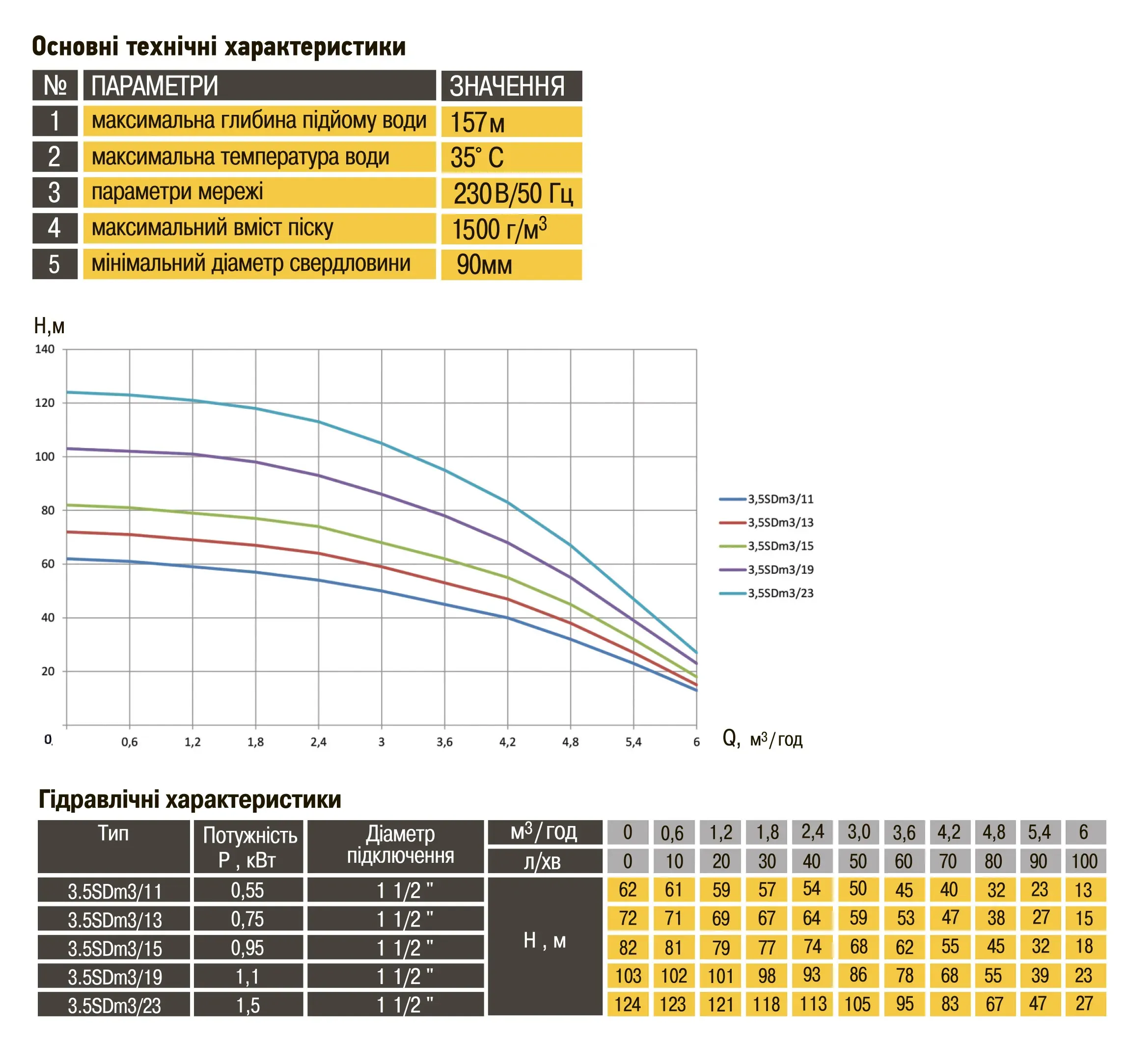 Насос скважинный с повышенной устойчивостью к песку 3,5 ″ OPTIMA 3.5SDm3/15 0.95 кВт 82м NEW , пятнадцать рабочих колес