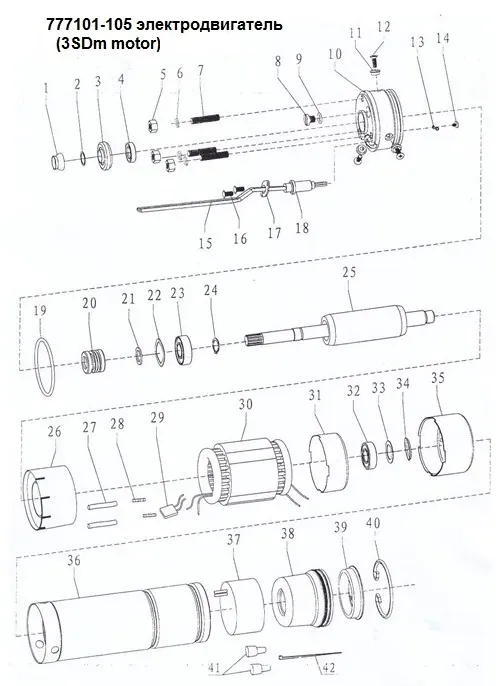 - Вал двигателя - Нержавеющая сталь AISI 304;