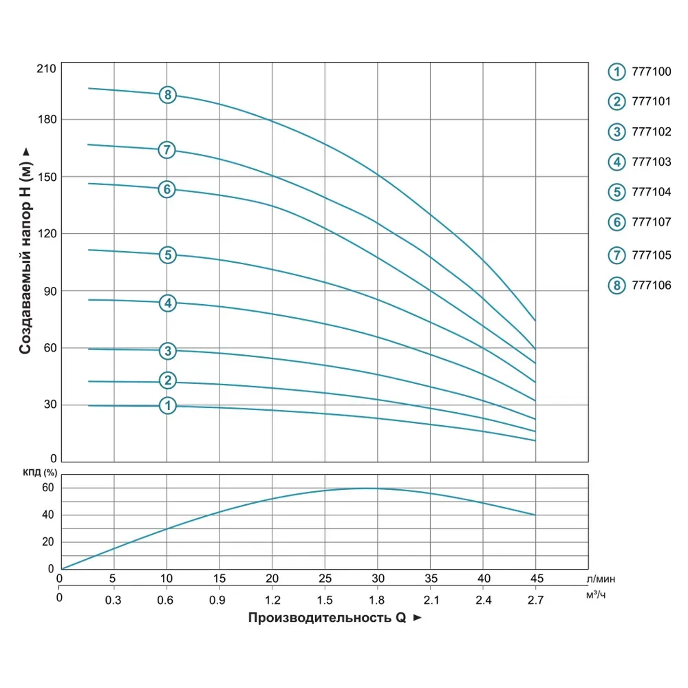- Номинальный подъем - 85 м - это показатель вертикального подъема при котором насос выдает свою номинальную производительность в 2 м³/ч.