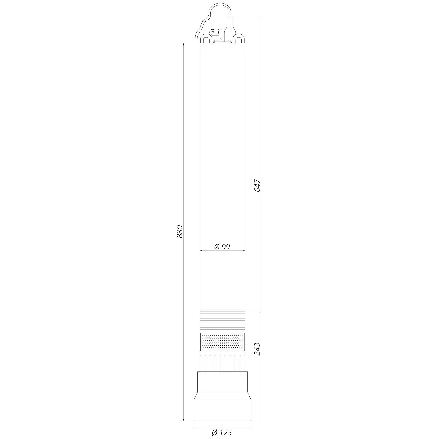 • Длина полипропиленового шнура для опускания и поднимания насоса - 25 м