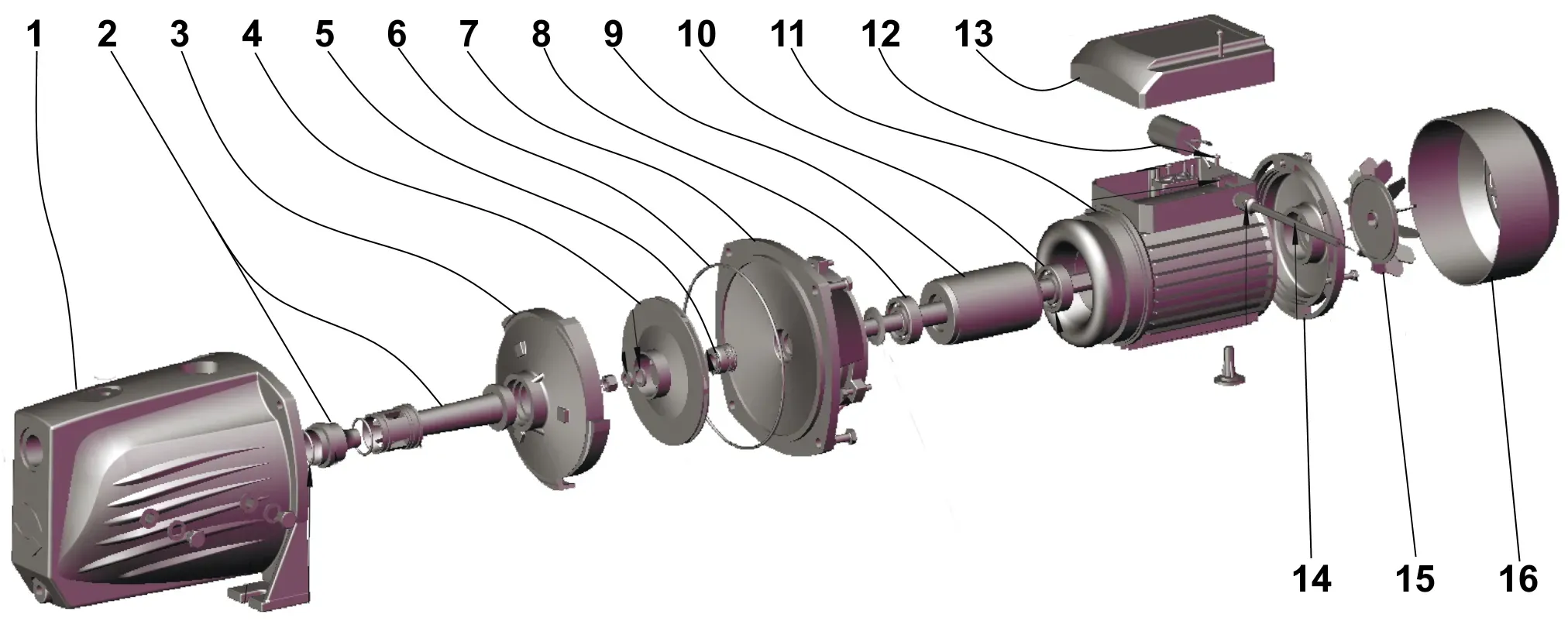 • Опоры вала ротора - шарикоподшипники, свободно доступны для обслуживания.