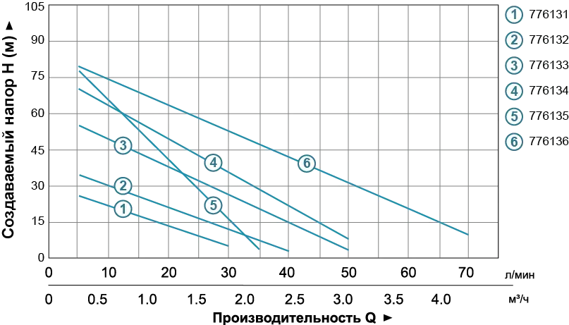 Допустимая температура жидкости для перекачивания – 60 оC, окружающей среды – до 40 оС.