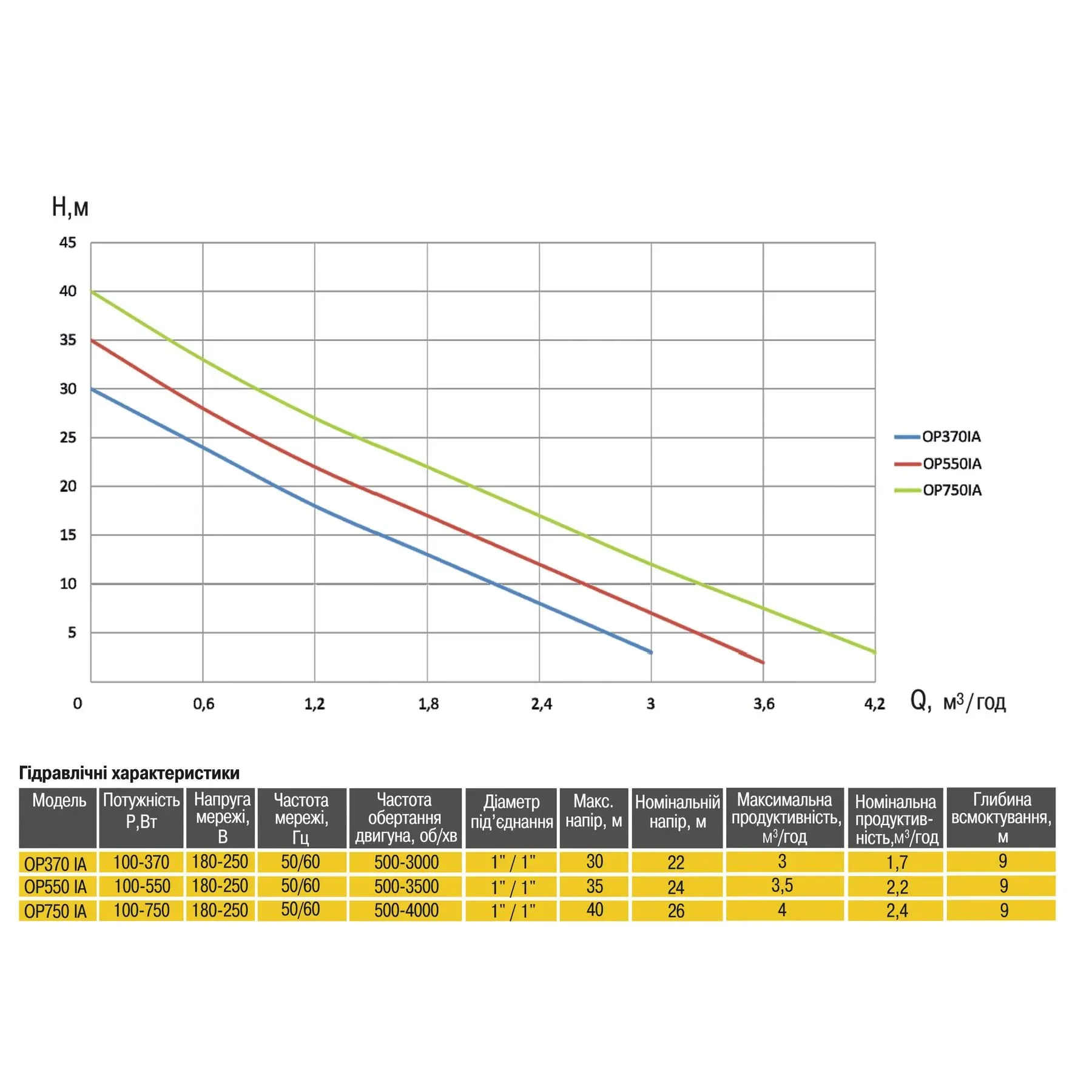 Максимальный напор - 40 м