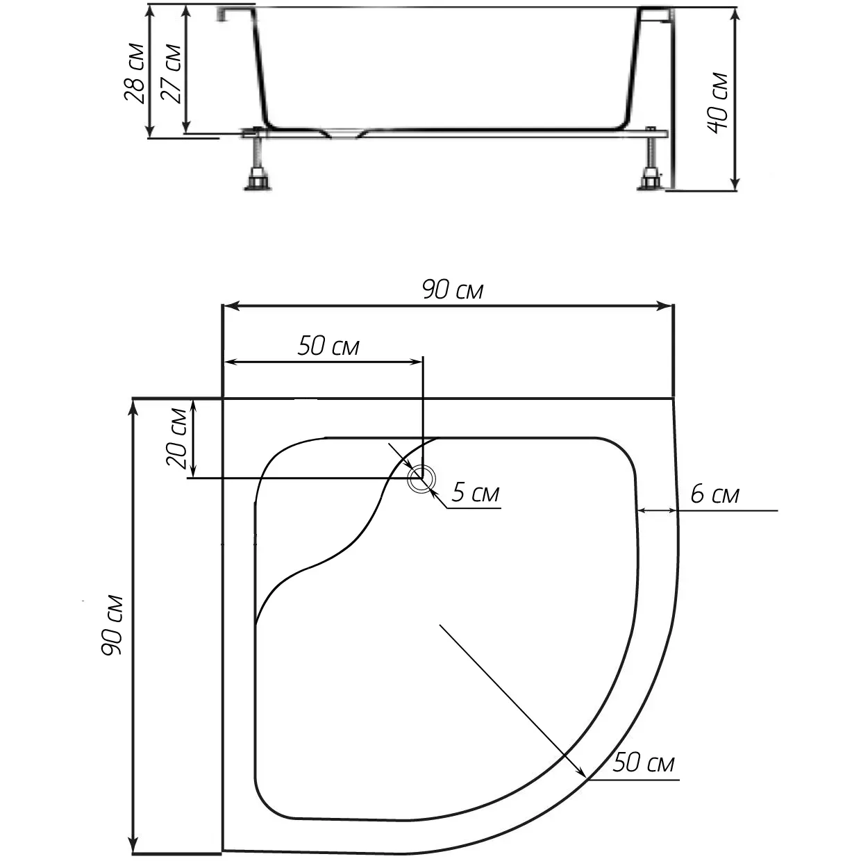 Душевой поддон полукруглый gora rh90f (rh90) bravo (1уп.)