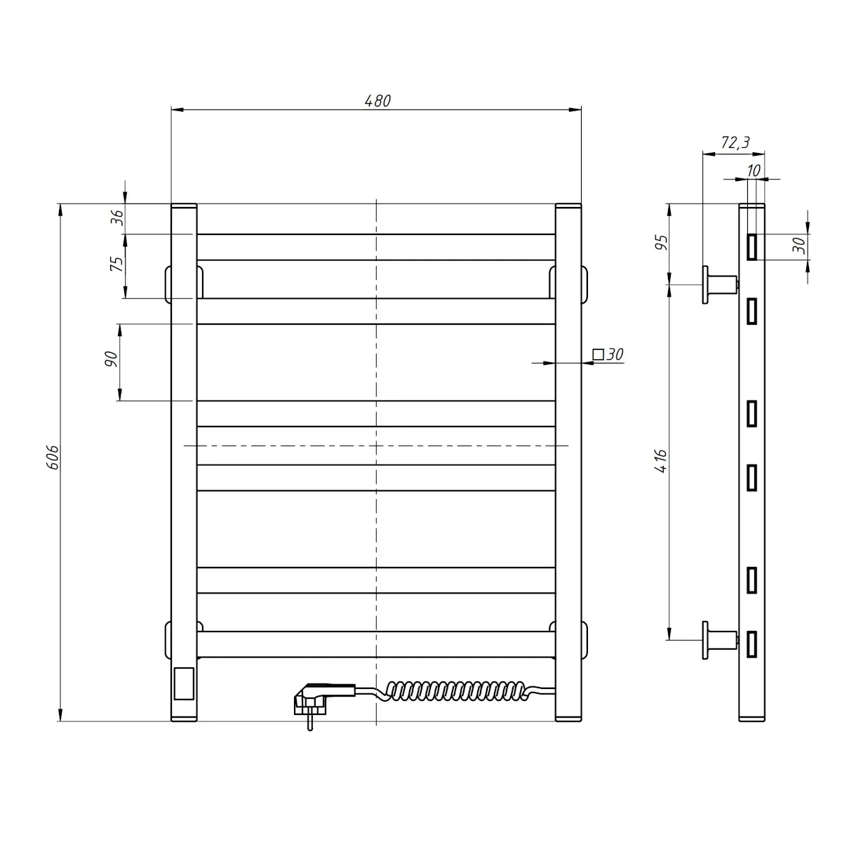 Электрическая полотенцесушитель NAVIN Авангард — яркий образец минимализма. Модель имеет боковые коллекторы (стойки), выполненные из профильной квадратной трубы 30х30 мм, а перемычки из прямоугольных трубок 30х10 мм. Это создает простую, строгую и совершенно привлекательную геометрическую гармонию. Продуманное расположение и оптимальные размеры элементов придают полотенцесушителям Авангард лаконичность, монументальность и однозначность формы. NAVIN изготовлена из углеродистой стали, которая отличается высоким качеством и прочностью. Модель обладает надежным порошковым покрытием. Толщина стенки коллекторов (стоек) и перемычек полотенцесушителя равна 1,5 мм.