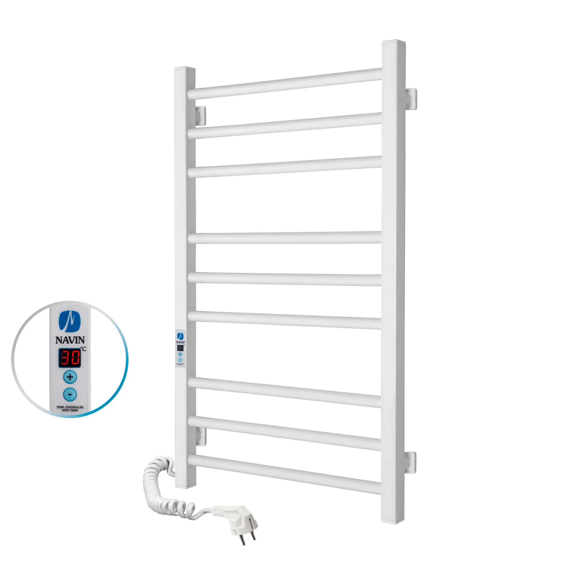 Полотенцесушитель Классик Квадро 500х800 Digital левая, белая от украинского производителя NAVIN изготовлена из углеродистой стали, которая отличается высоким качеством и прочностью. Толщина стенки перемычек полотенцесушителя составляет 1,5 мм, а боковых коллекторов 2 мм.