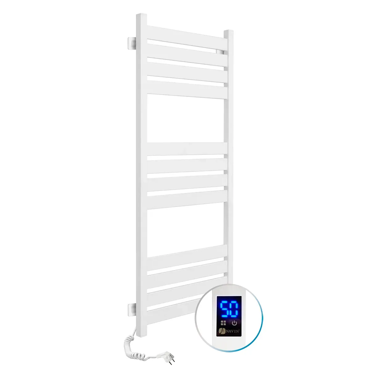 Полотенцесушитель Largo 500х1200 (цвет – белый бархат; расположение шнура с вилкой – слева) от украинского производителя NAVIN изготовлена из углеродистой стали, которая отличается высоким качеством и прочностью. Модель обладает надежным порошковым покрытием. Толщина стенки коллекторов (стоек) и перемычек полотенцесушителя равна 1,5 мм.