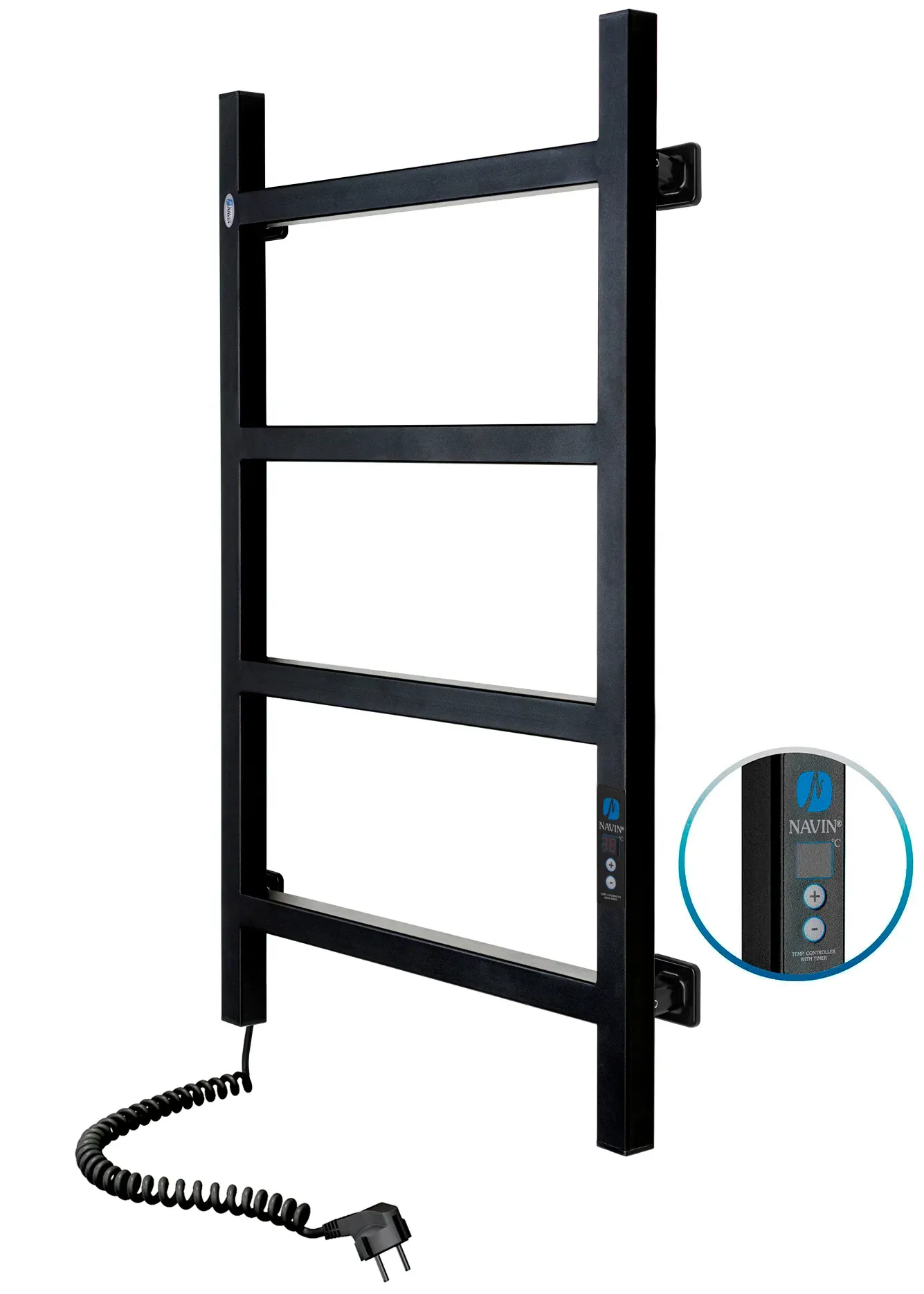 Электрическое полотенцесушитель Nordic, коллекторы и перемычки которого выполнены из профильной квадратной трубы 30х30 мм, что придает ему монументальность и увеличивает площадь поверхности. Прямые линии, четкие углы в сочетании с квадратным профилем и такими же перемычками, образуют красивый дизайн строгих нордических форм. и крепостью. Толщина стенки перемычек полотенцесушителя составляет 1,5 мм, а боковых коллекторов 2 мм. Тепловая мощность модели составляет: 110 Вт; Рабочая температура (*): 50° +/- 5°C;