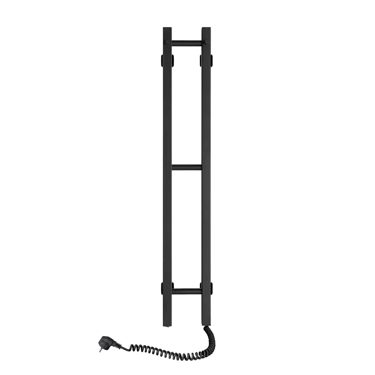Полотенцесушитель Силуэт Квадро 160х1000 (расположение шнура с вилкой — справа) изготовлена из углеродистой стали высокого качества и прочности. Модель имеет порошковое покрытие (цвет – черный муар). Толщина стенки коллекторов (стоек) и перемычек сушилки равна 1,5 мм .