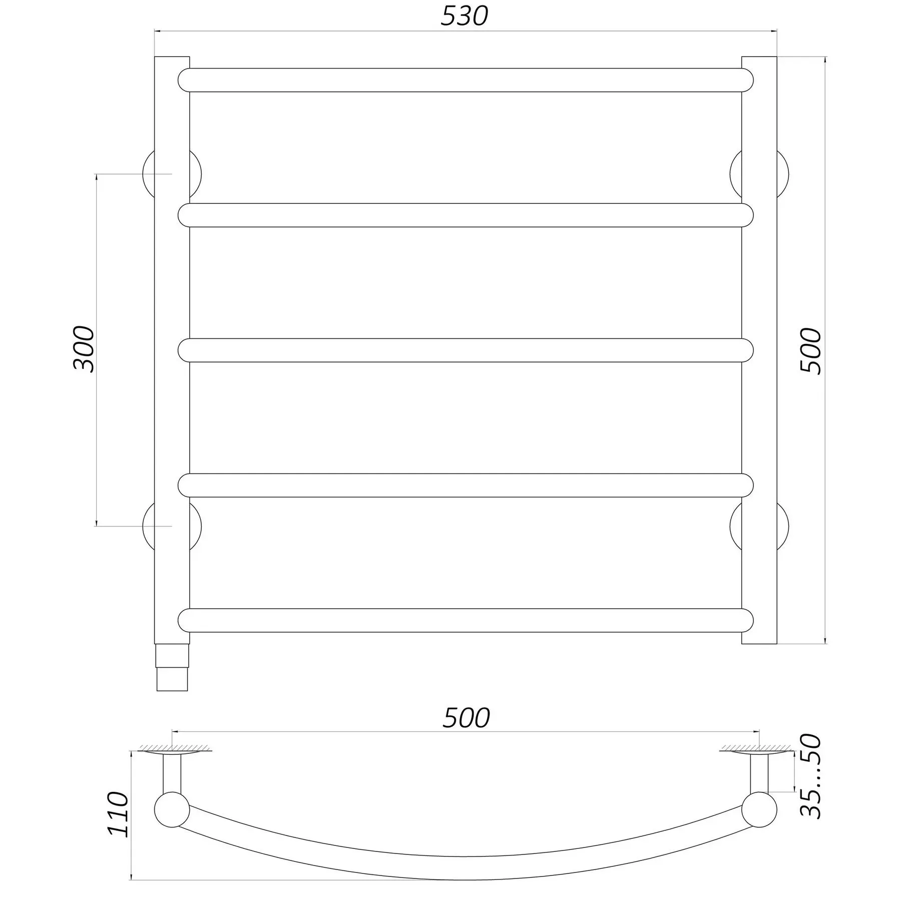 Полотенцесушитель unio ld er 500-500-5 blk лестница дуга электро черная