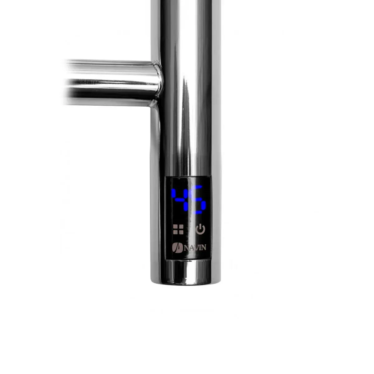 Электрическое полотенцесушитель NAVIN Премиум 500х700 Sensor с таймером(расположение шнура с вилкой - слева) , от украинского производителя NAVIN изготовлено из нержавеющей стали, которая является устойчивой к царапинам и механическим повреждениям, а также обладает высокой стойкостью. Толщина стенки перемычек полотенцесушителя составляет 1,5 мм, а стоек 2 мм. Полотенцесушитель имеет зеркальную полированную поверхность, полученную путем высокоточной электроплазменной полировки.