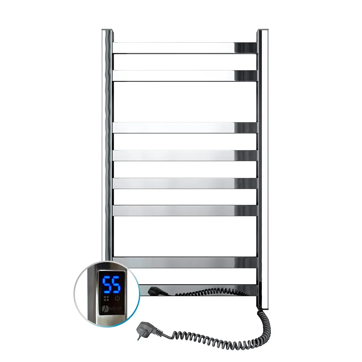 Электрическая полотенцесушитель NAVIN Авангард — яркий образец минимализма. Модель имеет боковые коллекторы (стойки), выполненные из профильной квадратной трубы 30х30 мм, а перемычки из прямоугольных трубок 30х10 мм. Это создает простую, строгую и совершенно привлекательную геометрическую гармонию. Продуманное расположение и оптимальные размеры элементов придают полотенцесушителям Авангард лаконичность, монументальность и однозначность формы. , которая устойчива к царапинам и механическим повреждениям, а также обладает высокой антикоррозионной стойкостью. Толщина стенки перемычек полотенцесушителя составляет 1,5 мм, а боковых стоек (коллекторов) — 2 мм. Сушилка имеет зеркальную полированную поверхность, полученную путем высокоточной электроплазменной полировки.