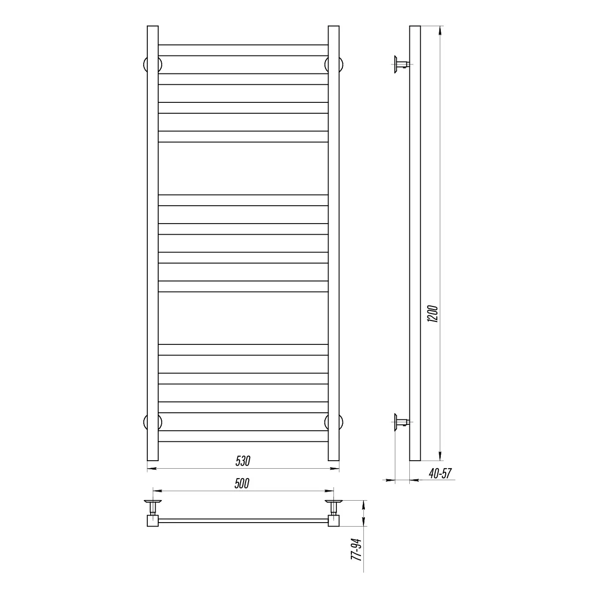 Водяное полотенцесушитель Авангард 500х1200 (габаритные размеры — 530х1200 мм) от украинского производителя NAVIN изготовлен из пищевой нержавеющей стали, которая является устойчивой к царапинам и механическим повреждениям, а также обладает высокой антикоррозионной стойкостью. Толщина стенки полотенцесушителя составляет 2 мм и имеет зеркальную полированную поверхность, полученную путем высокоточной электроплазменной полировки.