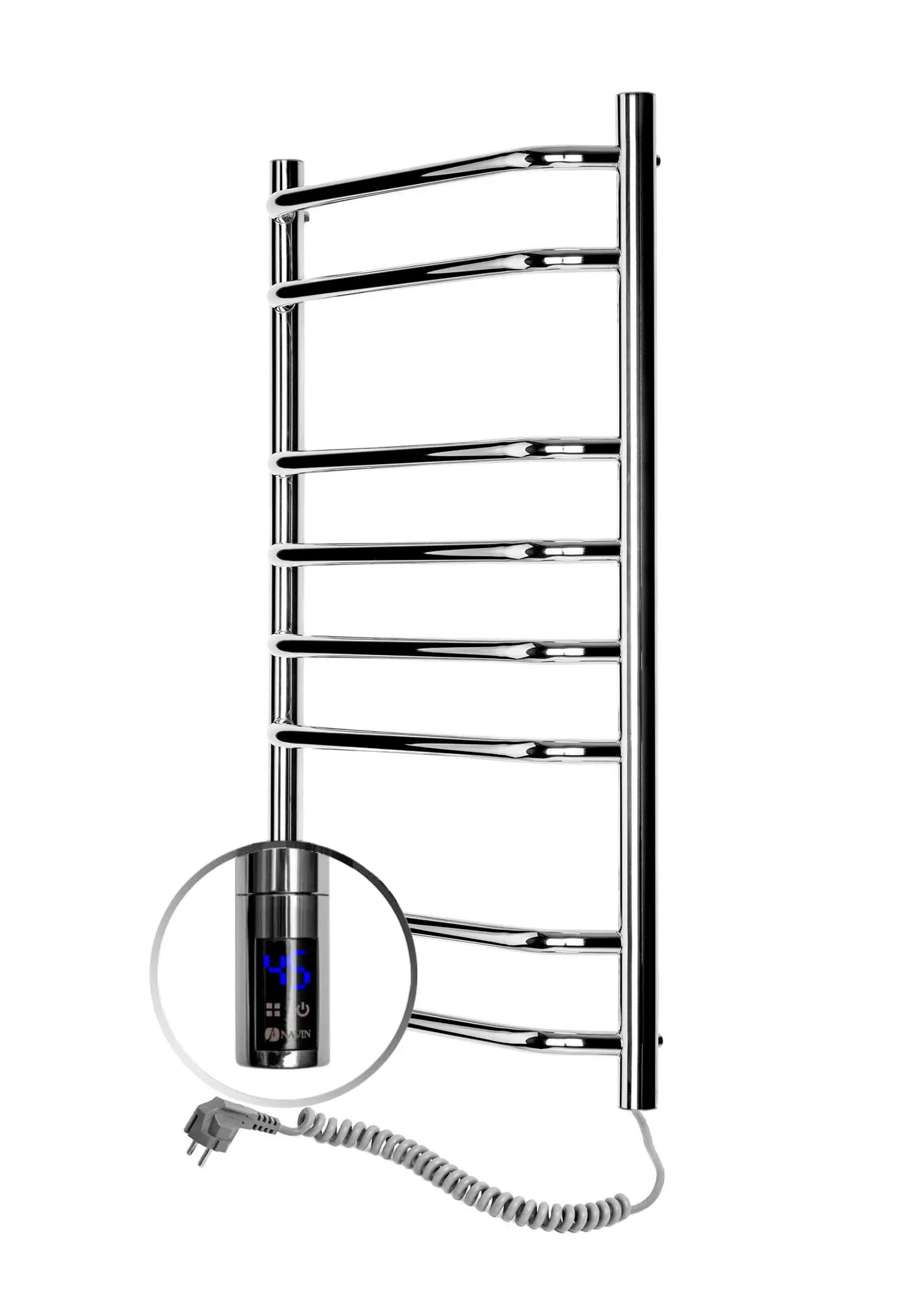 Электрическое полотенцесушитель Блюз 480х800 сенсор с таймером, от украинского производителя NAVIN изготовлен из нержавеющей стали, которая является стойкой к царапинам и механическим повреждениям, а также обладает высокой антикоррозионной стойкостью. Толщина стенки перемычек полотенцесушителя составляет 1,5 мм, а стоек 2 мм. Полотенцесушитель имеет зеркальную полированную поверхность, полученную путем высокоточной электроплазменной полировки.