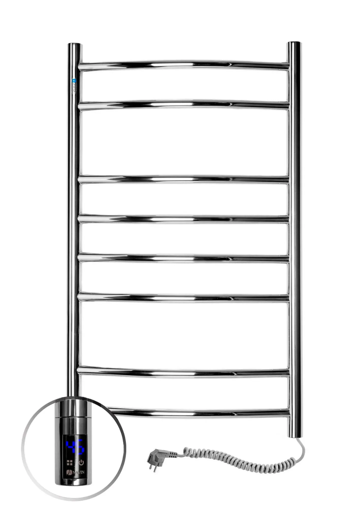 Электрическая полотенцесушитель Камелия 480х800 сенсор с таймером, от украинского производителя NAVIN изготовлена из нержавеющей стали, которая устойчива к царапинам и механическим повреждениям, а также обладает высокой антикоррозионной стойкостью. Толщина стенки перемычек полотенцесушителя составляет 1,5 мм, а стоек 2 мм. Полотенцесушитель имеет зеркальную полированную поверхность, полученную путем высокоточной электроплазменной полировки.